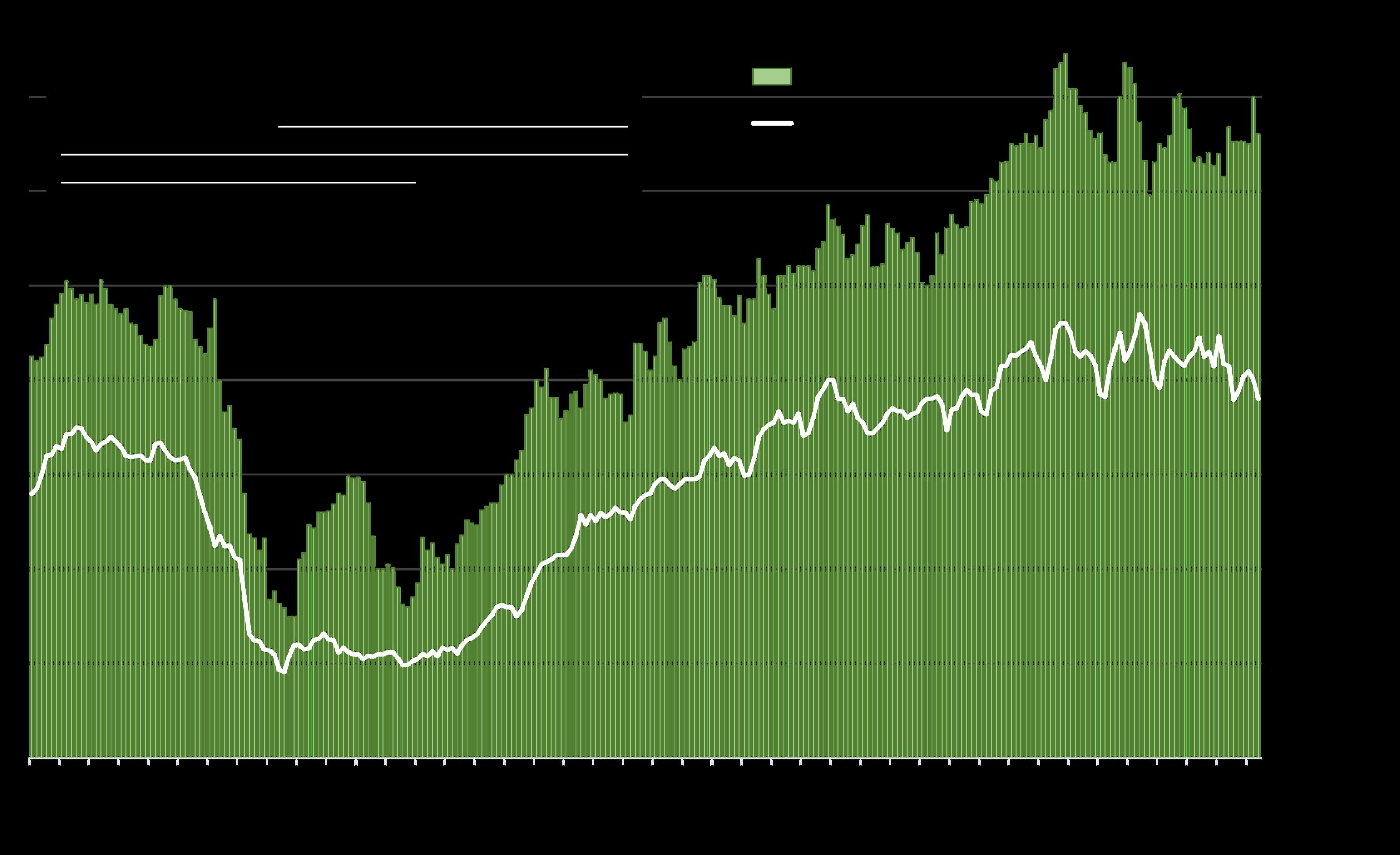 This statistic fluctuates according to seasonal demand trends, and is a lagging indicator of market activity 3-6 weeks earlier.