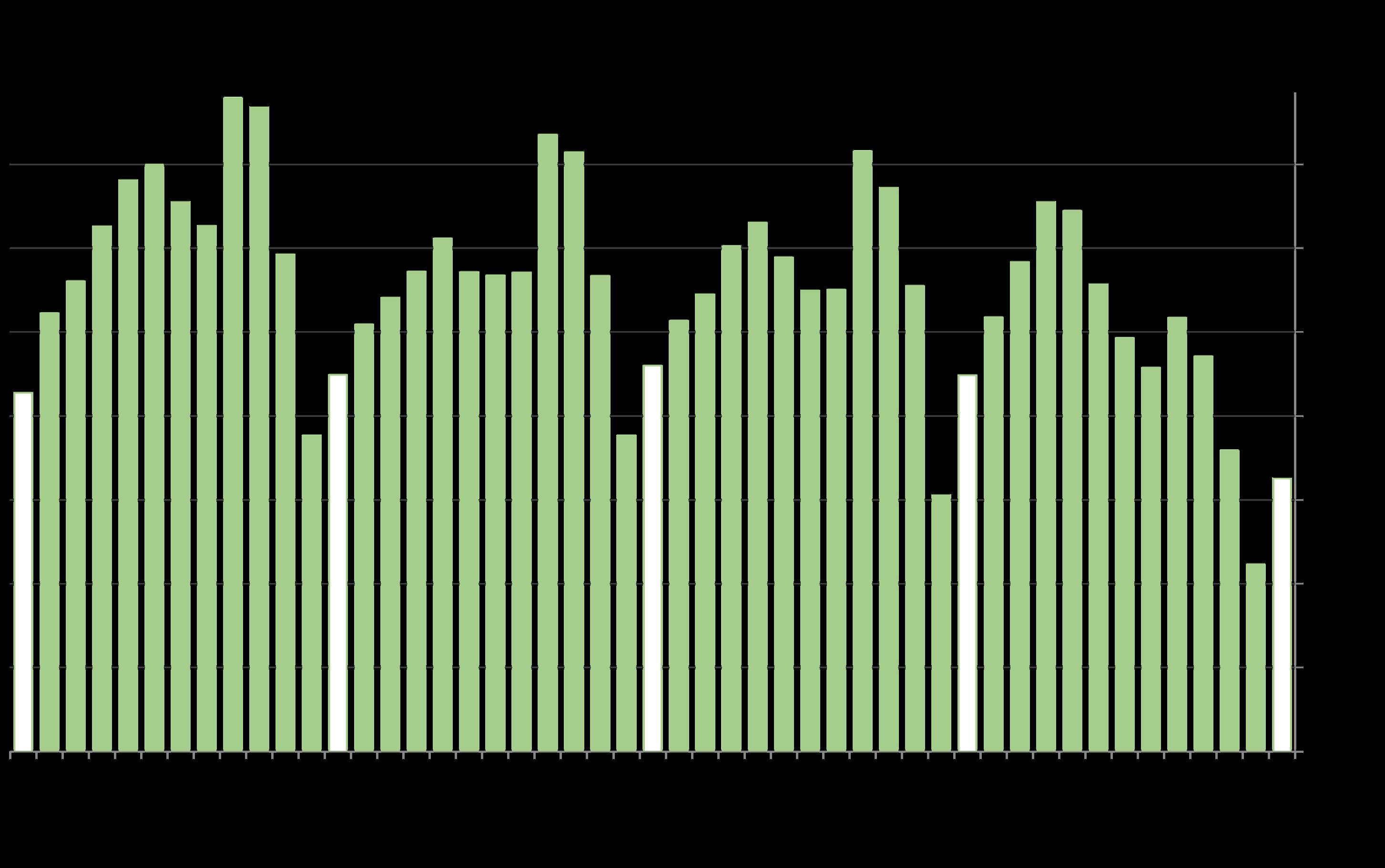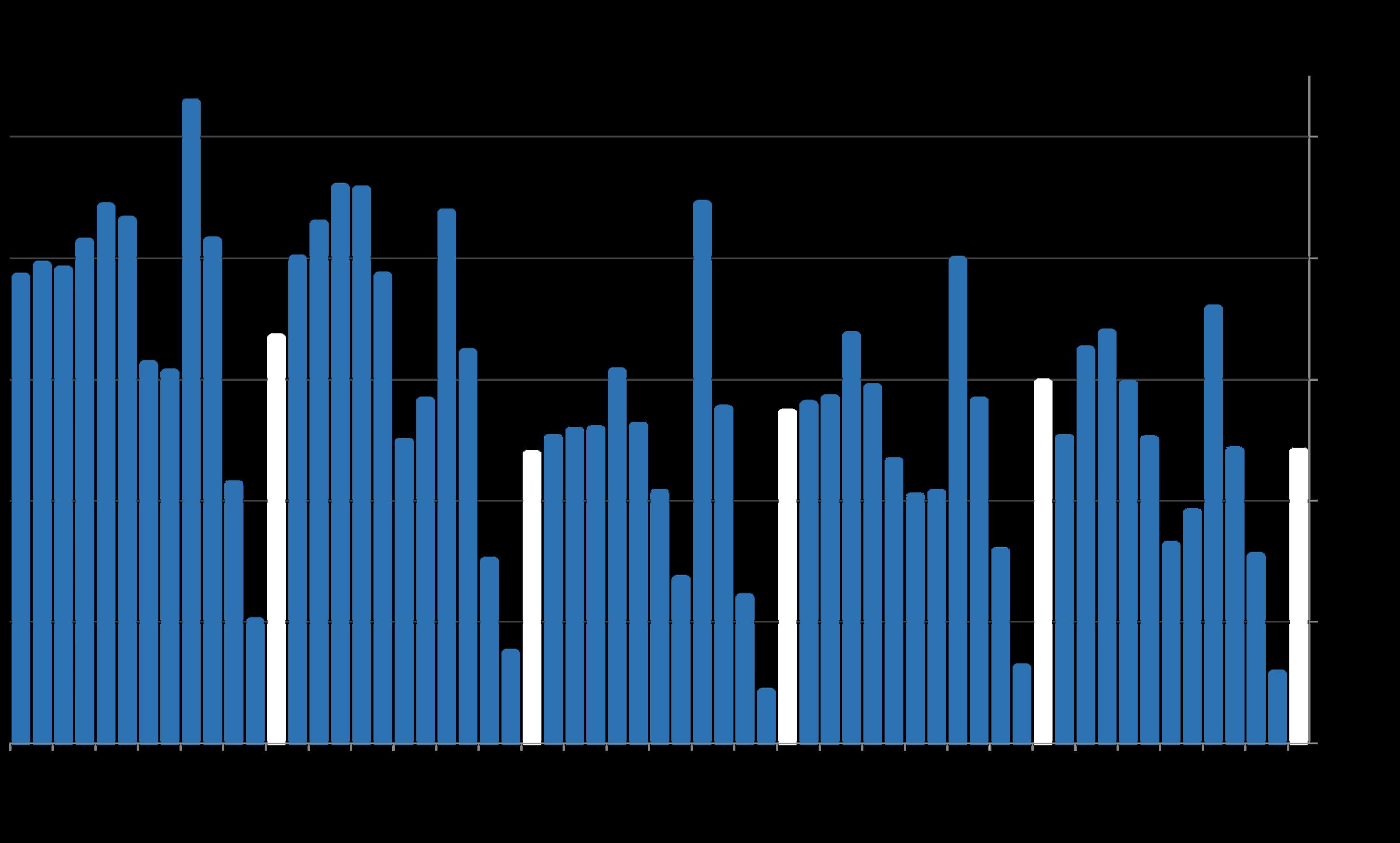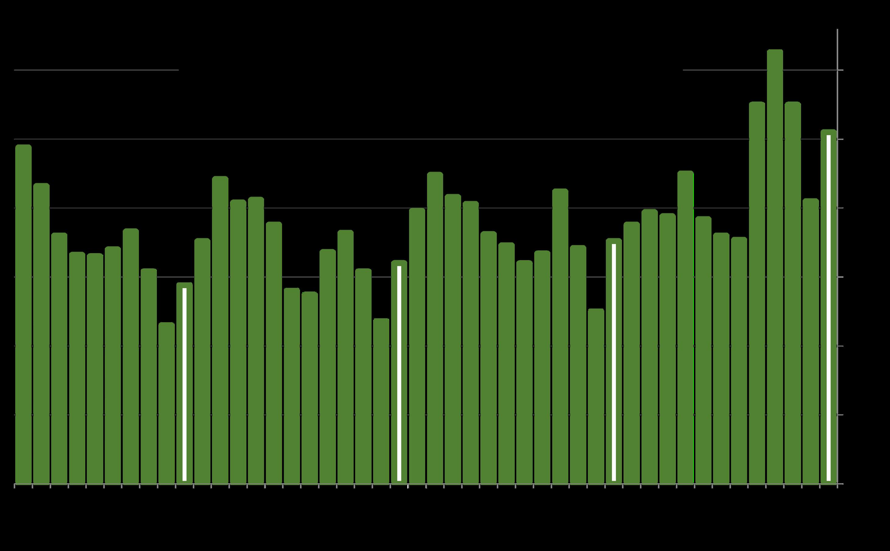 Federal government employment spikes every 10 years because of temporary hiring for the decennial census. → New administration begins |
