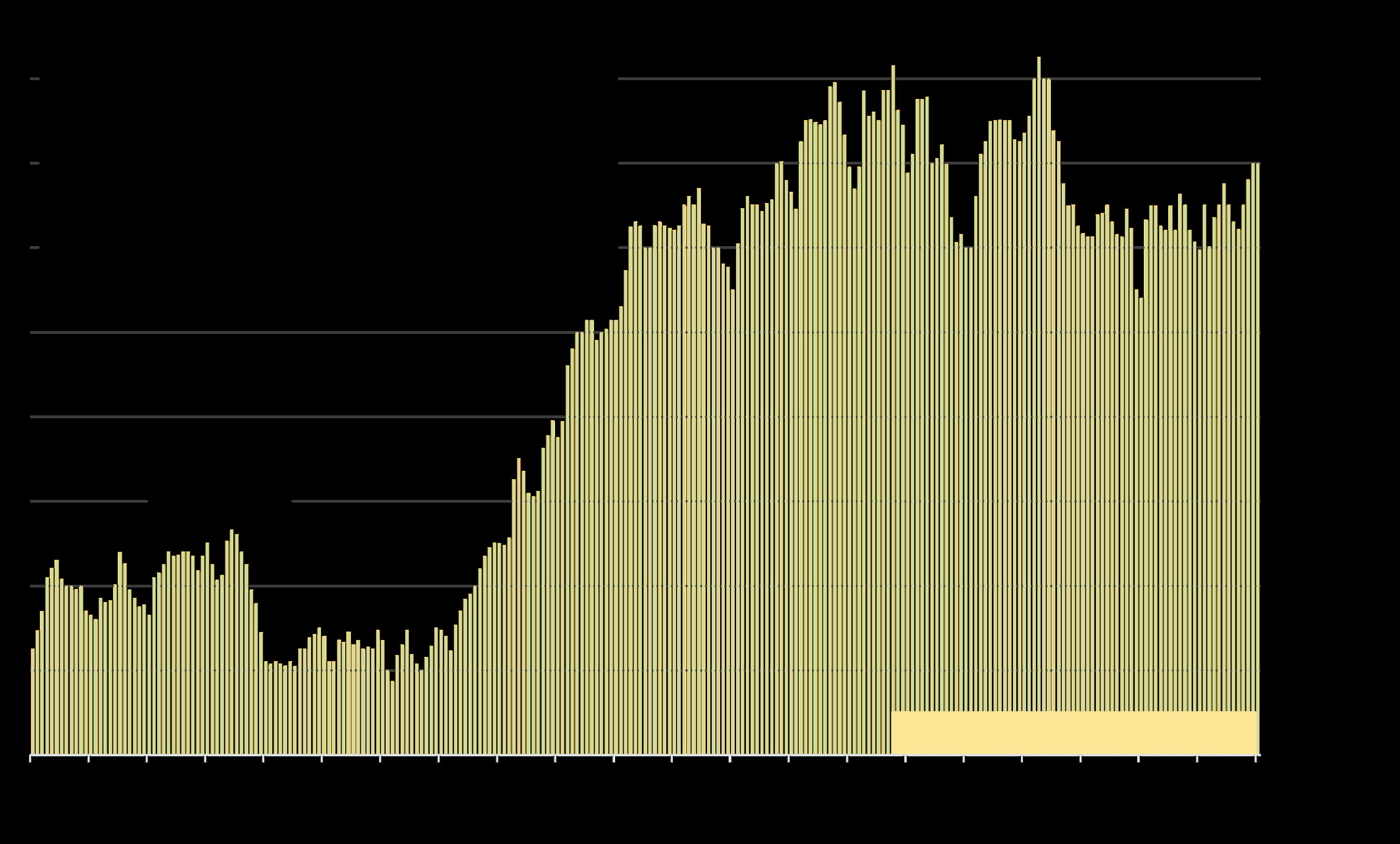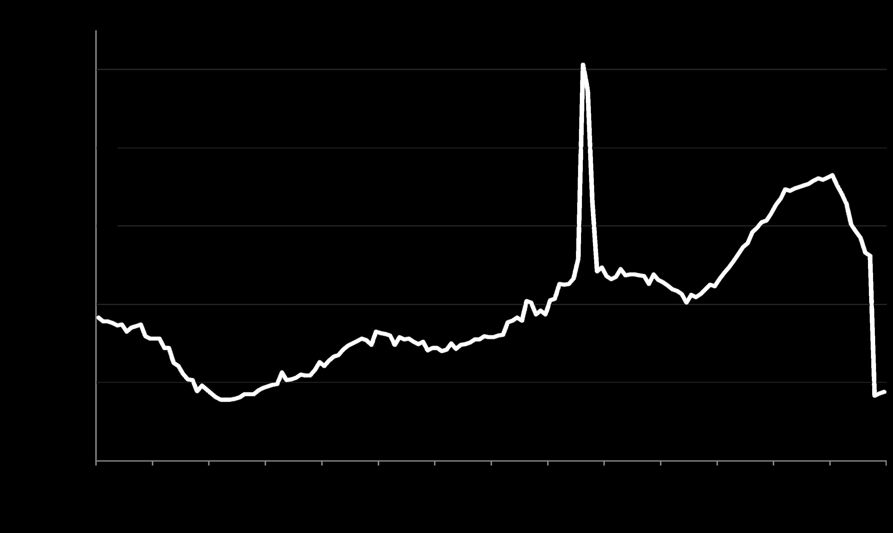 *Source: 'Measuring Economic Policy Uncertainty' by Scott Baker, Nicholas Bloom and Steven J. Davis, 3component index, www.PolicyUncertainty.com, https://www.policyuncertainty.com/us_monthly.html. Data from sources deemed reliable, but numbers to be considered approximate and subject to revision.