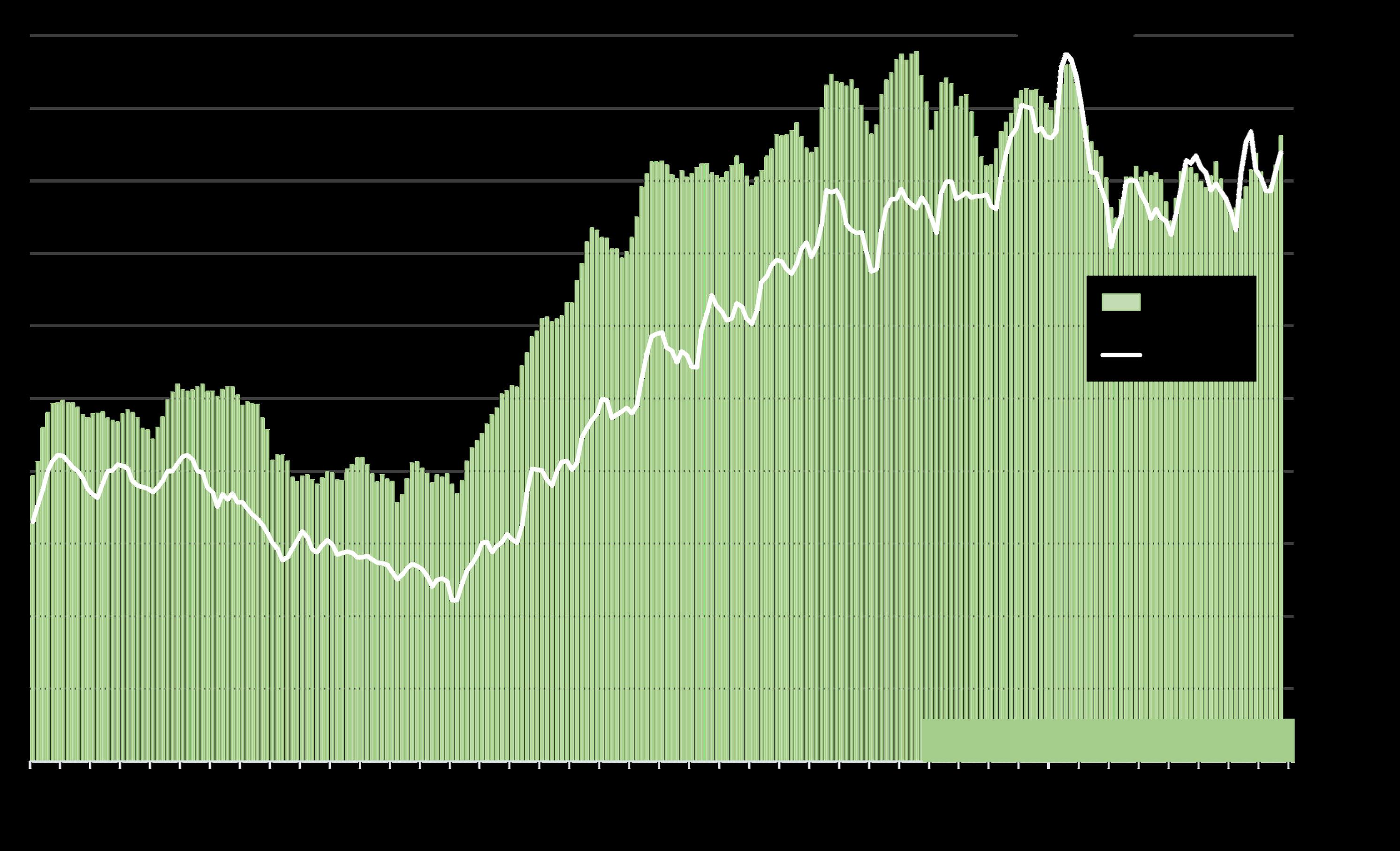 This statistic fluctuates according to seasonal demand trends and is a lagging indicator of market activity 3-6 weeks earlier.