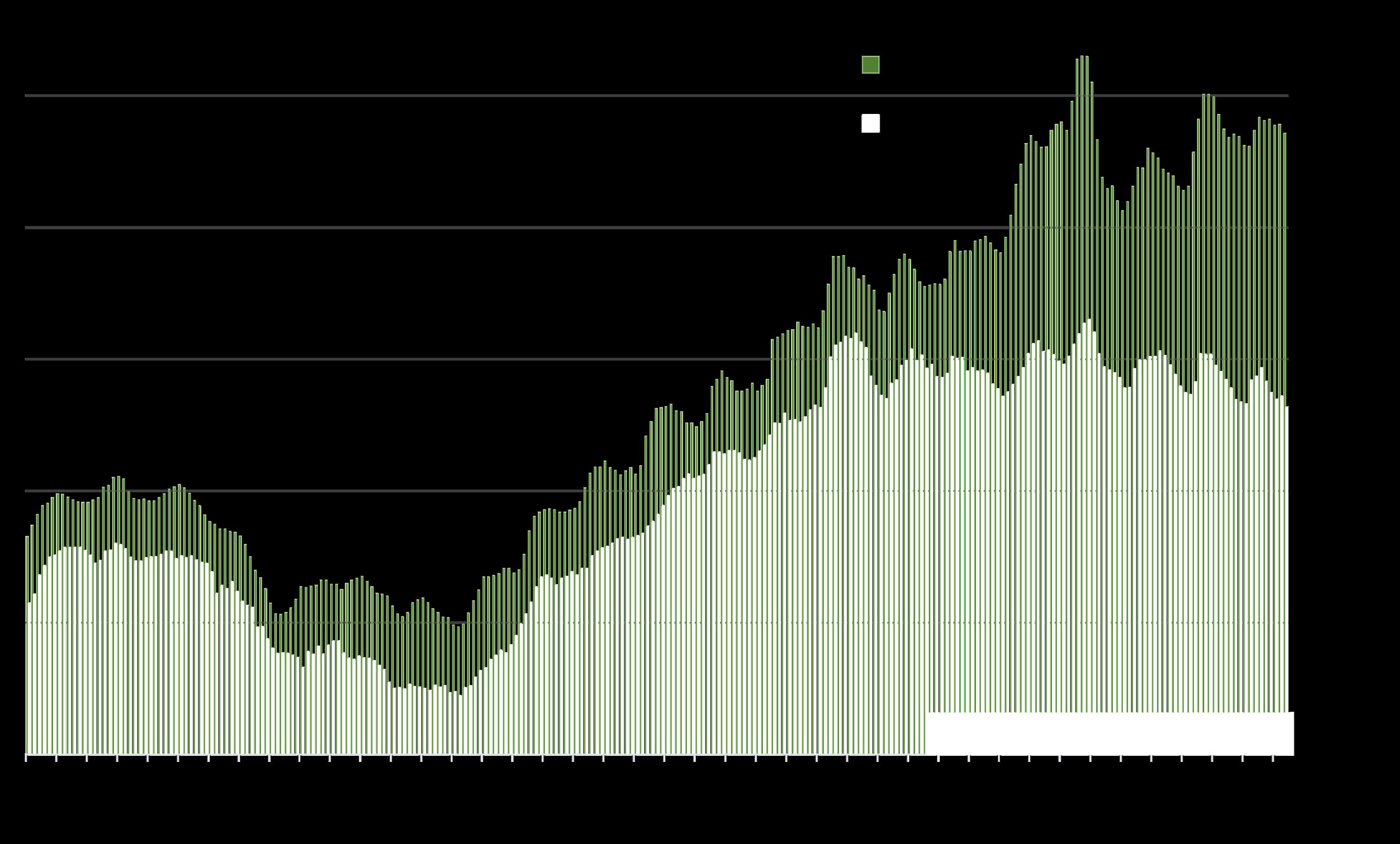*Source: 'Measuring Economic Policy Uncertainty' by Scott Baker, Nicholas Bloom and Steven J. Davis, 3component index, www.PolicyUncertainty.com, https://www.policyuncertainty.com/us_monthly.html.