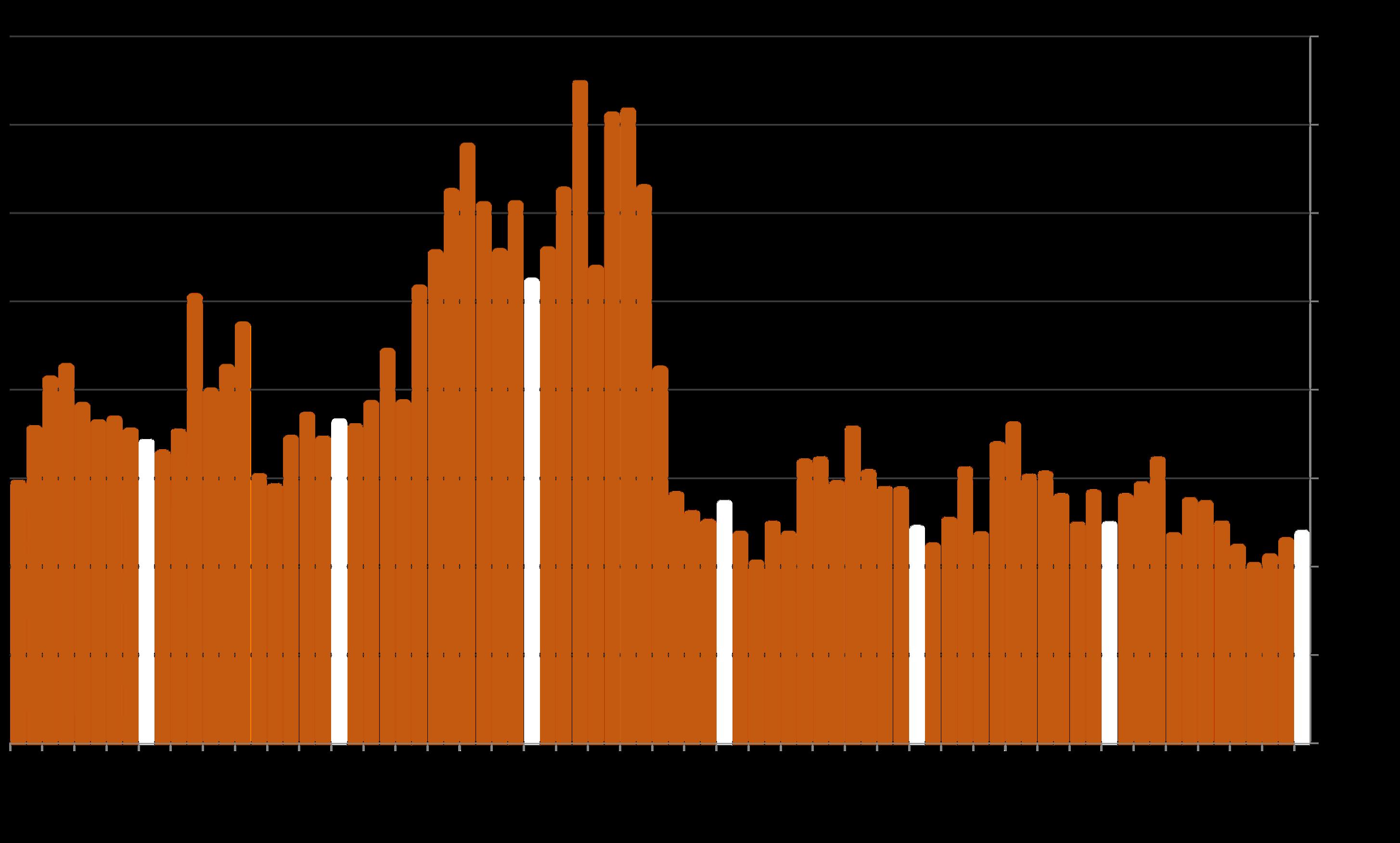 This statistic fluctuates by season, and is a lagging indicator of market activity 3-6 weeks earlier.