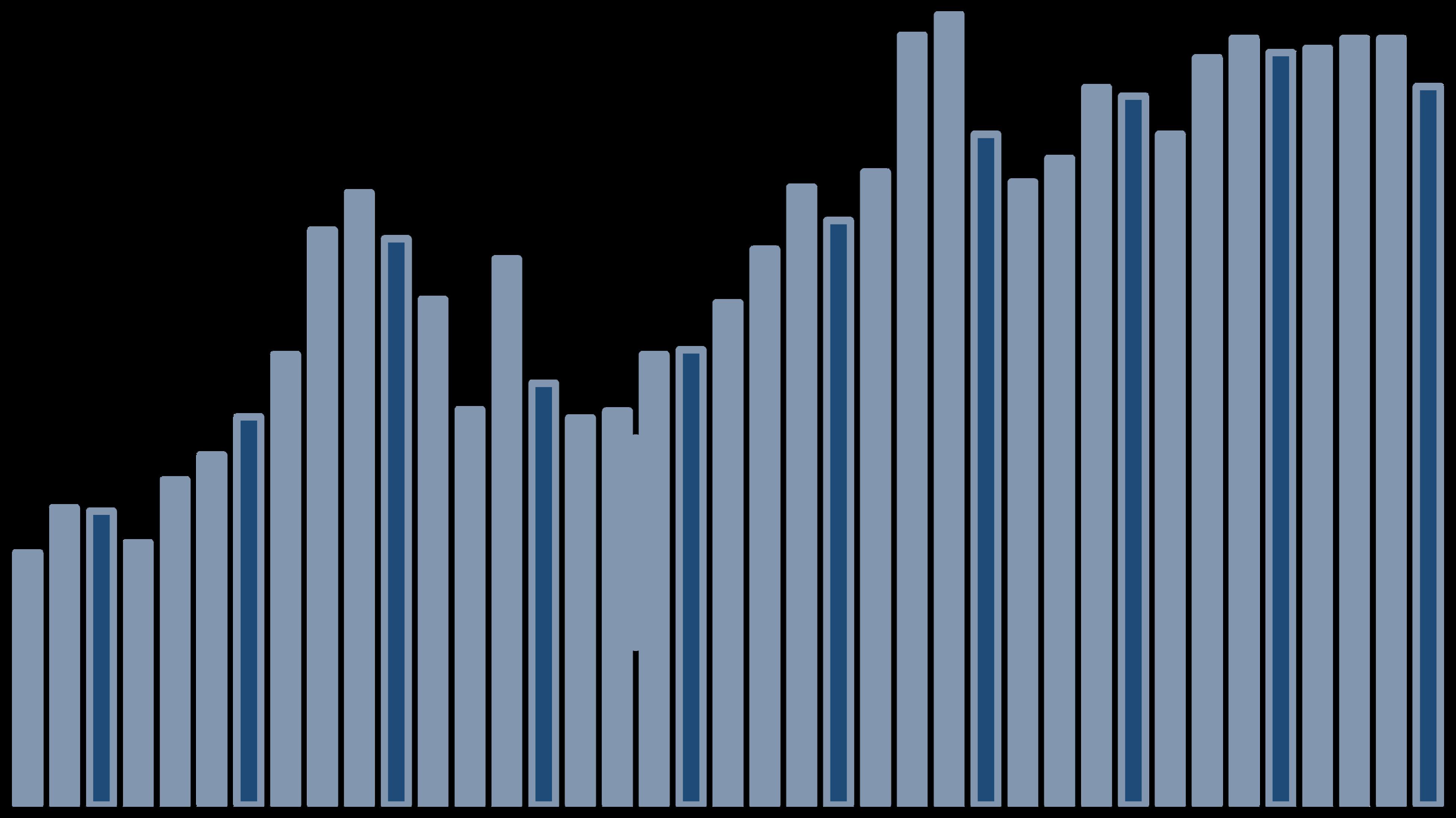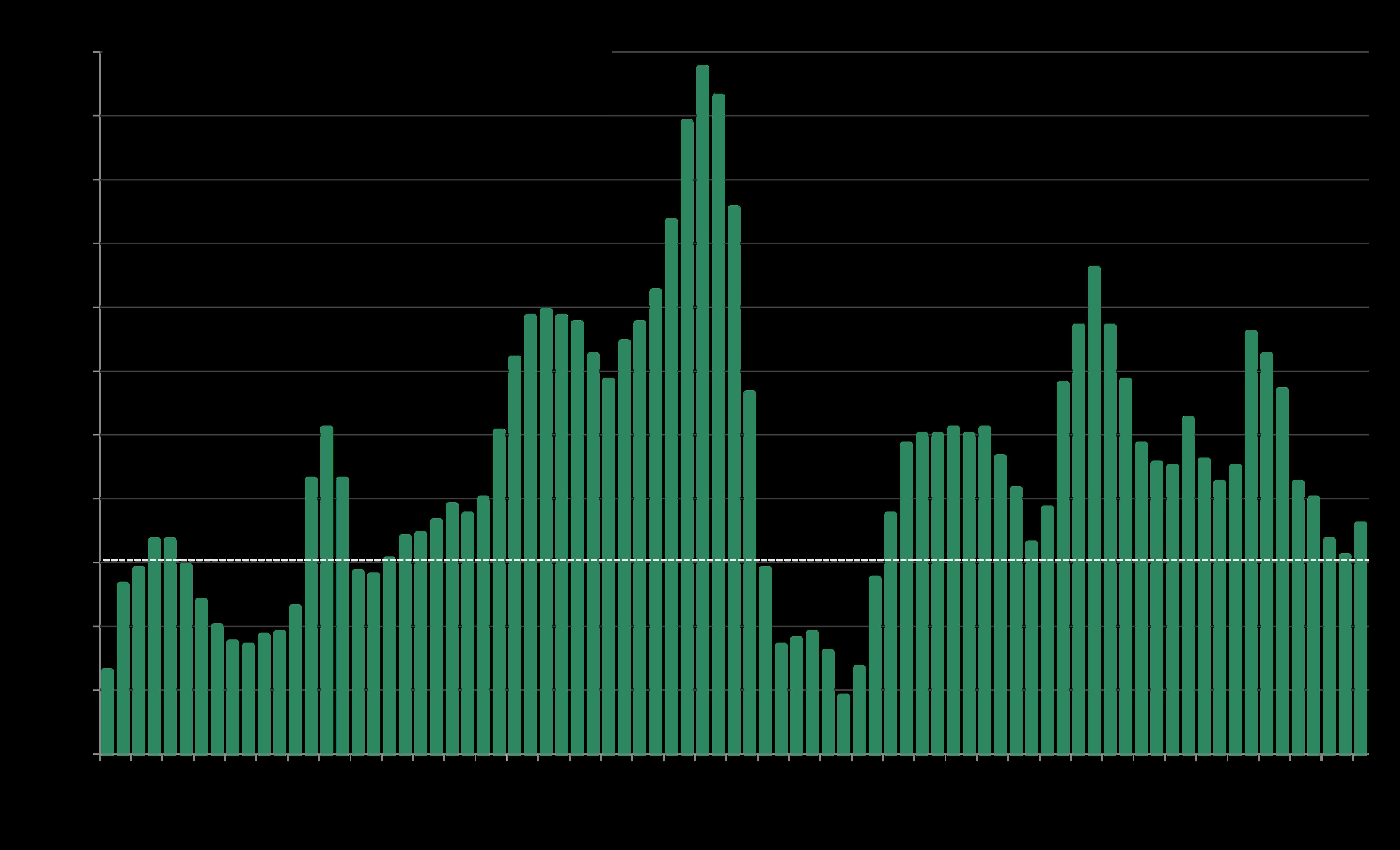 *Source: 'Measuring Economic Policy Uncertainty' by Scott Baker, Nicholas Bloom and Steven J. Davis, 3component index, www.PolicyUncertainty.com, https://www.policyuncertainty.com/us_monthly.html.