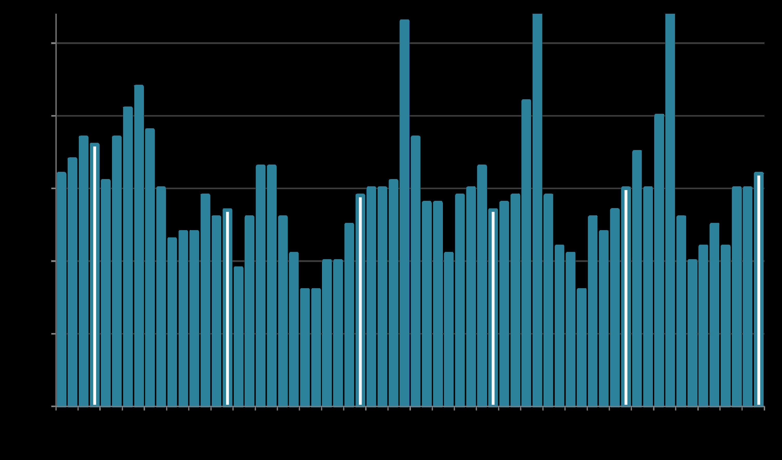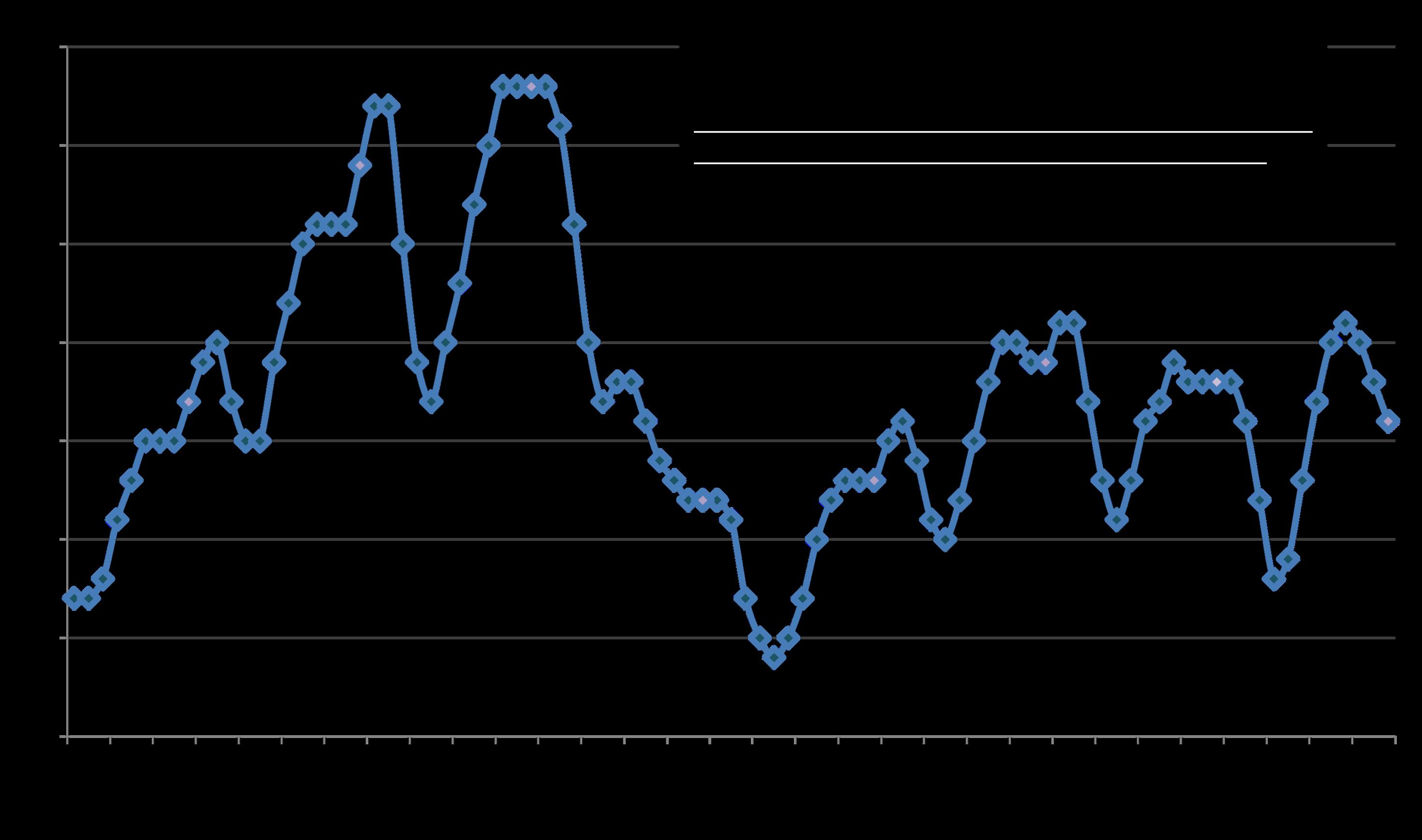 This statistic fluctuates by season, and is a lagging indicator of market activity 3-6 weeks earlier.