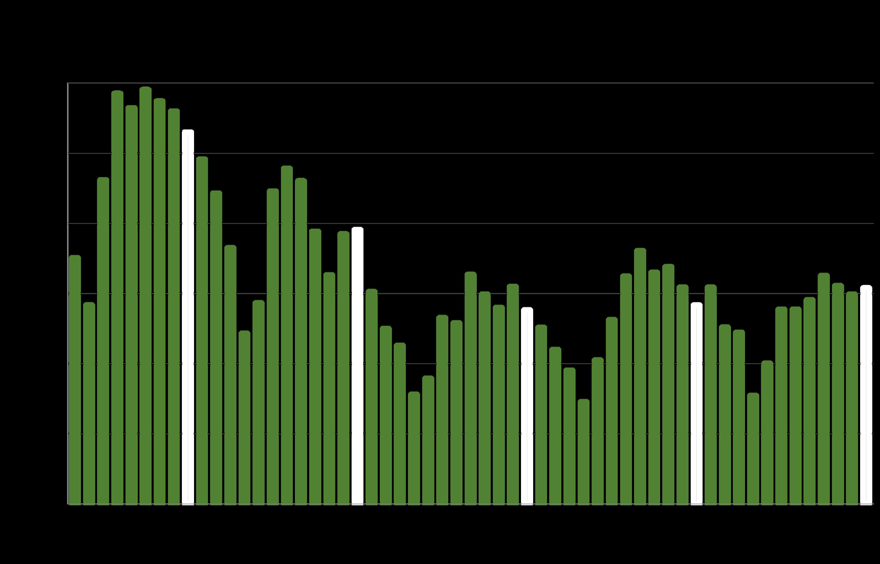 *Source: 'Measuring Economic Policy Uncertainty' by Scott Baker, Nicholas Bloom and Steven J. Davis, 3component index, www.PolicyUncertainty.com, https://www.policyuncertainty.com/us_monthly.html.