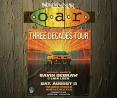This August O.A.R. (Of A Revolution) returns to celebrate three decades of sax-soaked jams, pop rock hooks and sing-along choruses that swell from a sway to full hands-in-the-air refrains. Think “Shattered (Turn the Car Around),” “Love and Memories,” “Hey Girl,” and a rousing “Crazy Game of Poker.” Special guest Gavin DeGraw brings his soulful, piano-driven pop infused with rich heartfelt fire, and the lovely Lisa Loeb adds her witty, folk-pop and charming warmth to harmonies that will feel both fresh and familiar. You may not realize it, but you’re about to share the next summer anthem with thousands of your new best friends.