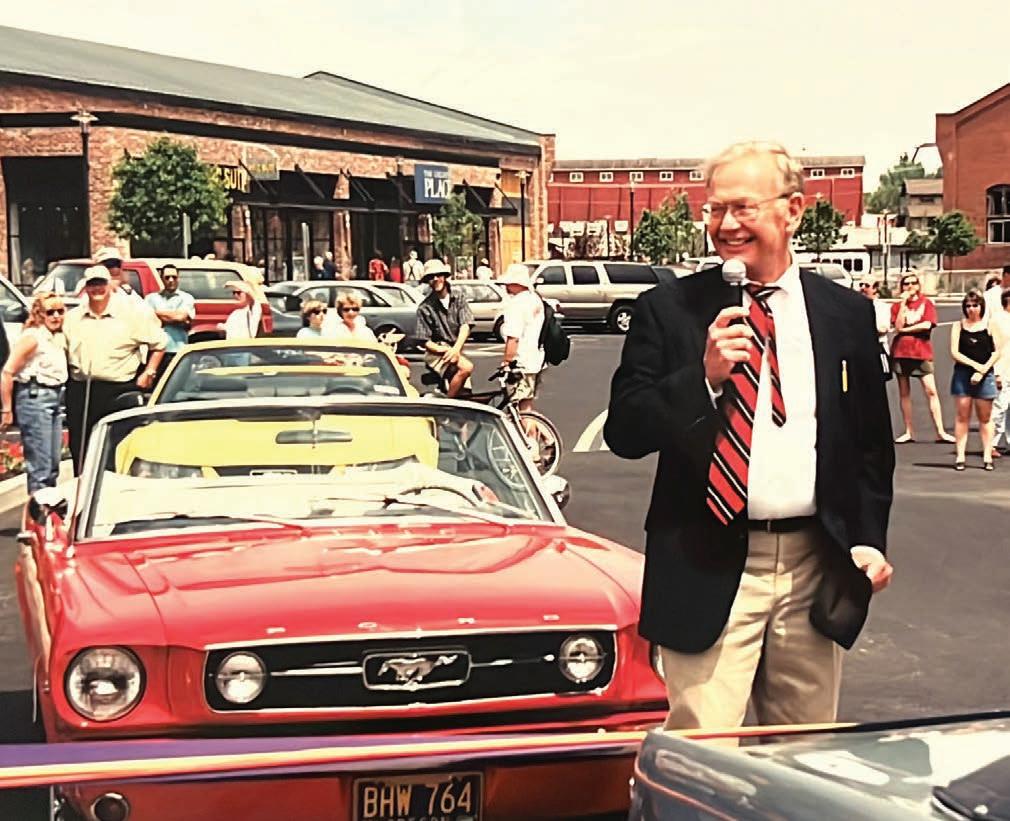 The Old Mill District celebrated its official grand opening in 2001 with 15 tenants. Bill Smith led the festivities.