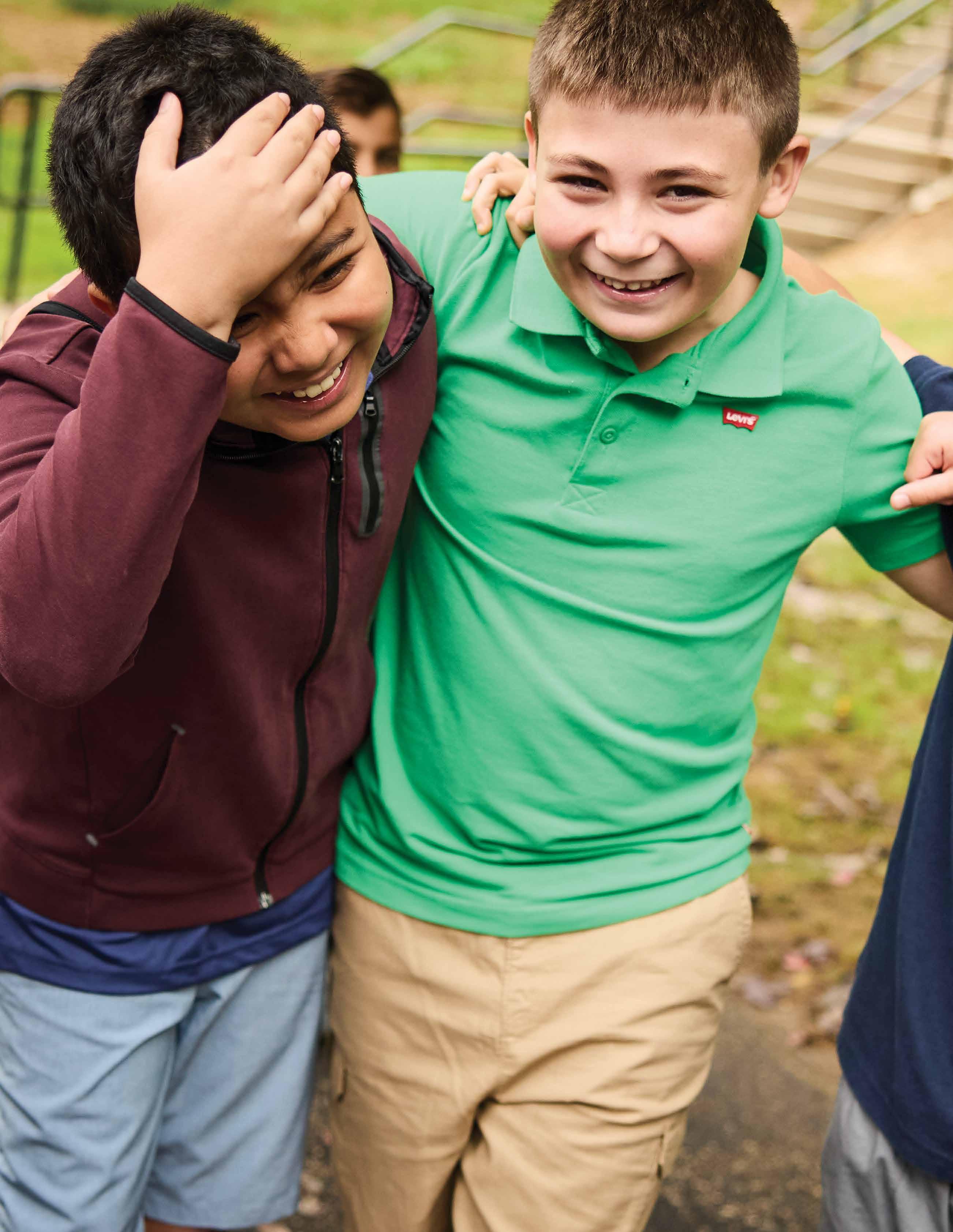 Intermediate School students enjoy a joyful moment together on the playground during recess.