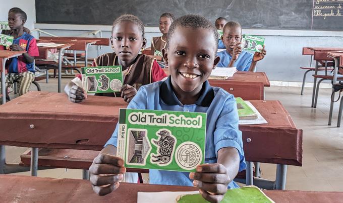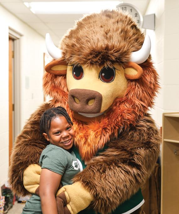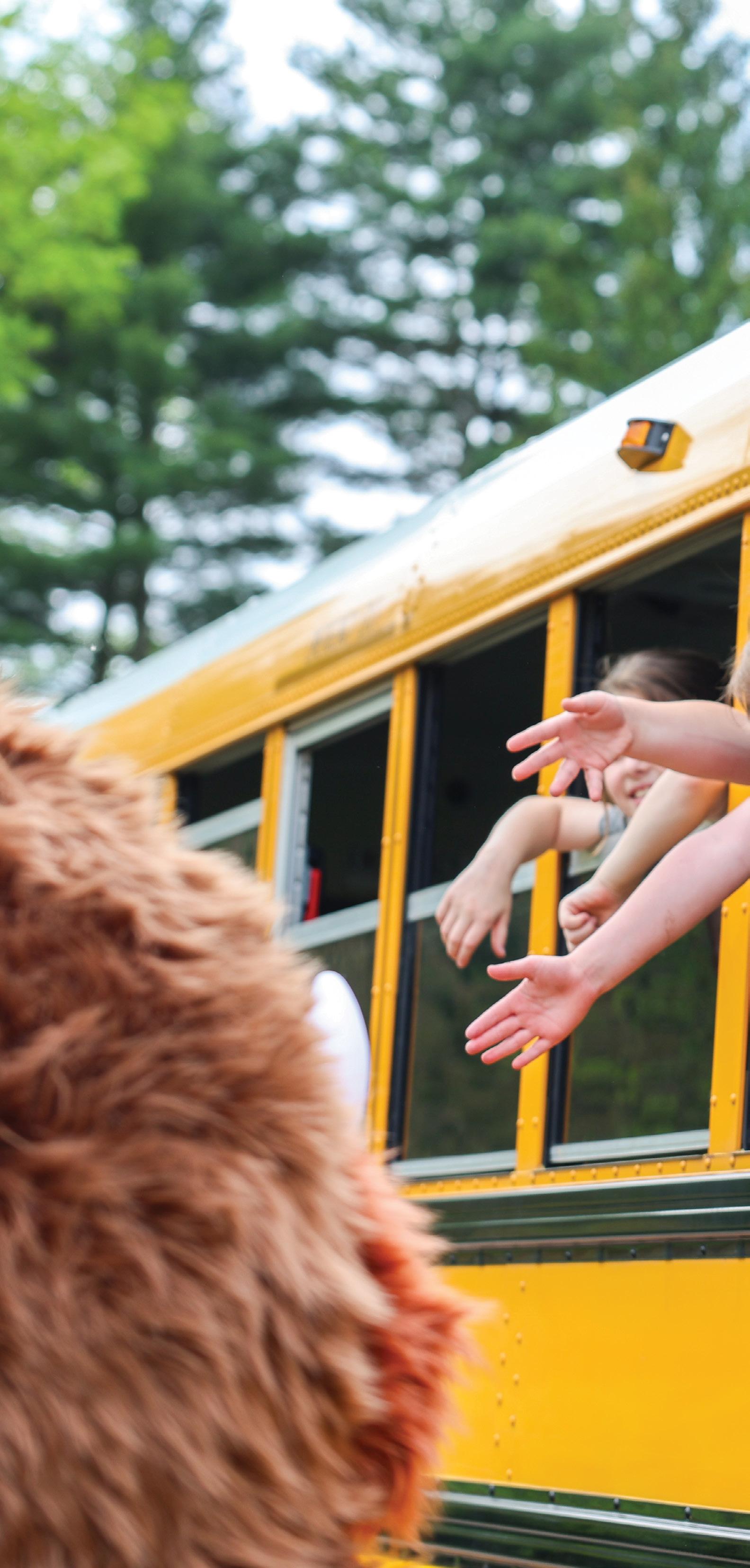 Pure joy! With excitement, OTS students try to catch a glimpse of the newly designed Otis the Buffalo mascot as their bus prepares for dismissal. Our beloved American bison received a complete makeover last year and was officially introduced to the Old Trail community on May 7 as part of our first-ever OTS Day. See page 22 for more details.