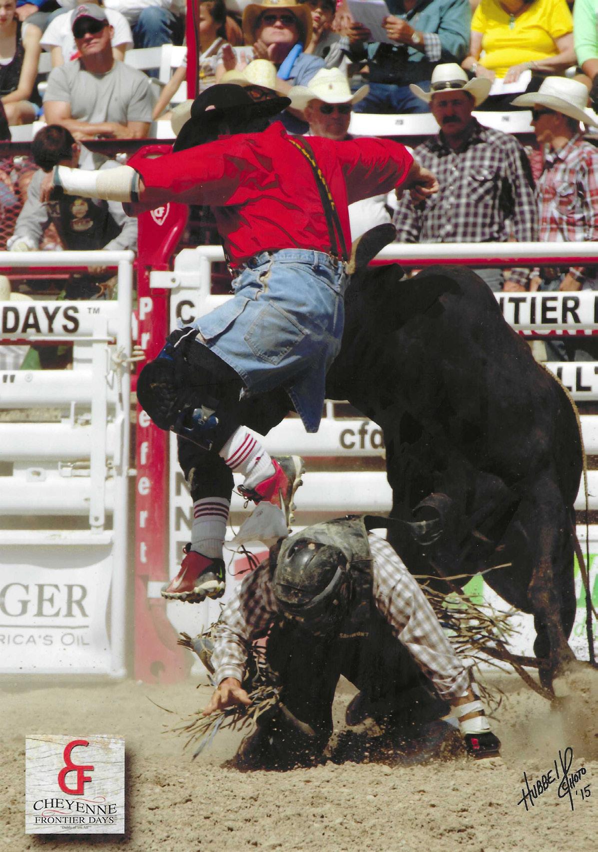 become a member of the Professional Rodeo Cowboys Association and pursued the chance to fight bulls in every major rodeo in the United States, including Cheyenne Frontier Days™. His efforts hit the mark and Darrell first stepped into the CFD arena as a PRCA bullfighter in 2004. Known for daring saves he would sometimes throw in a bit of humor, and skill, when he would ride a bull backwards with his feet hooked around the bull’s horns. While he didn’t appear in CFD in 2005, he returned in 2006 and stayed until his last appearance in 2015.
