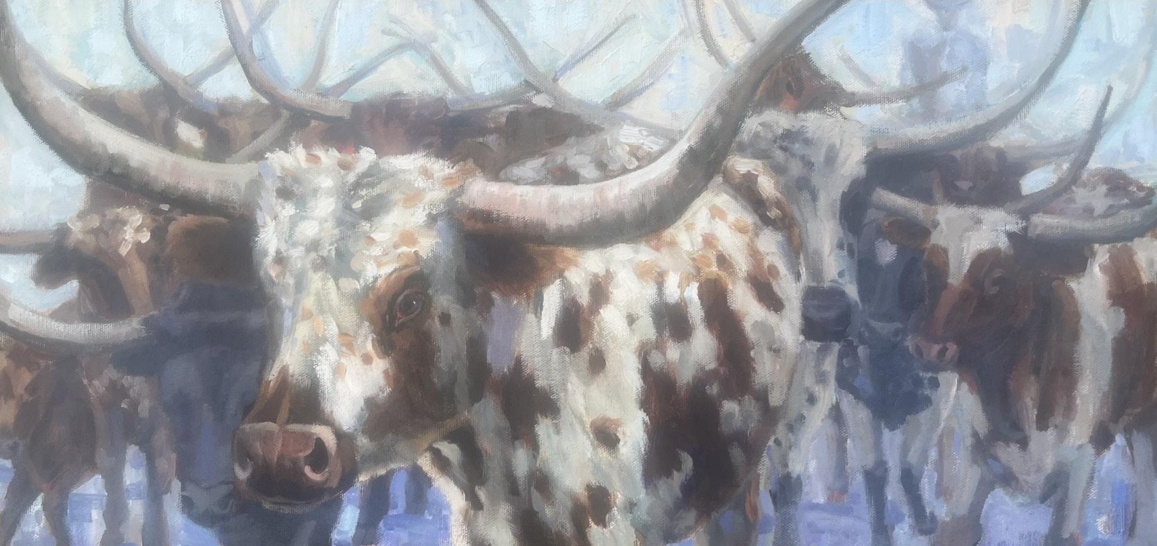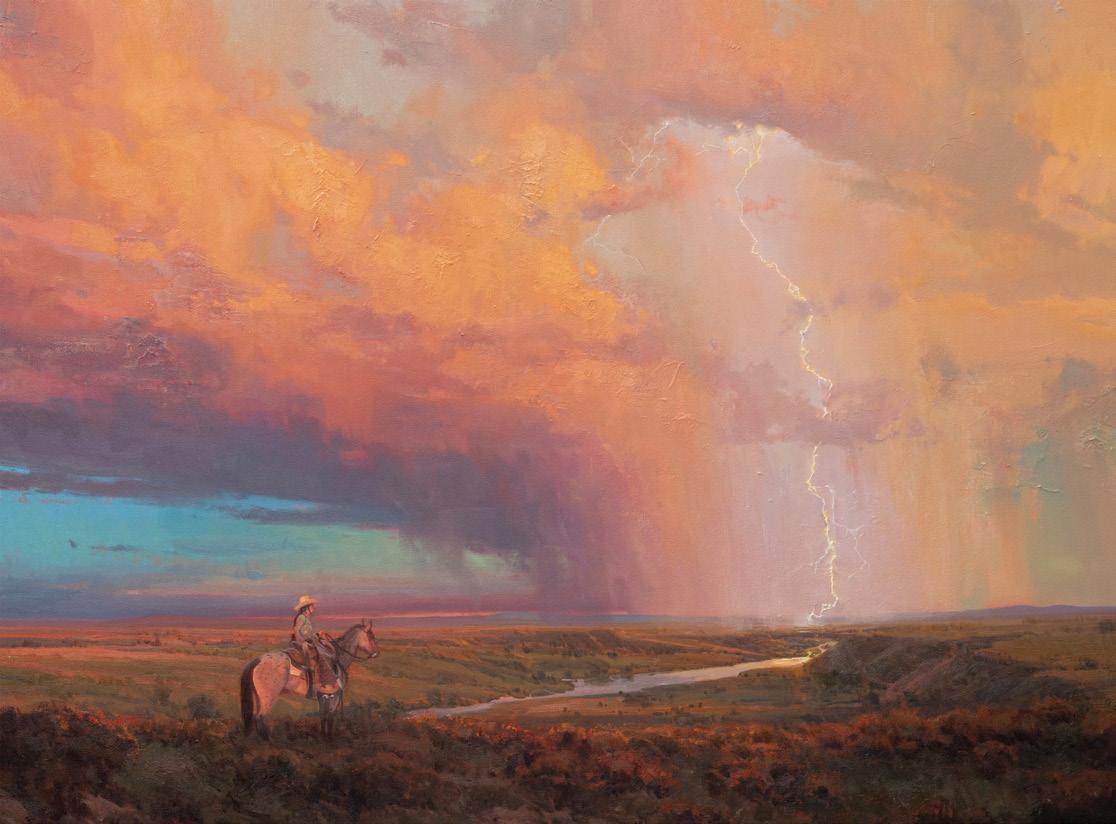 Curtis, Mike, and I have been working hard to improve our already extremely impressive gallery. This year we have accepted 5 pieces of art that exceed the size limit that was set for art pieces entering the show before our first ever art show in 1981. To accomplish this the team has been hard at work figuring out how we could display and store these pieces. We are extremely excited to see how everyone receives our larger-thanlife pieces this year. In addition, we will be painting the stage a new color, tweaking the layout, and experimenting with how we display bronzes. We hope that all of these changes will result in providing our visitors with the best art show this museum has ever seen. We hope to see you all there on July 18th for our 44th Annual CFD Western Art Show & Sale.