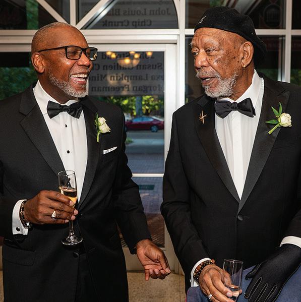 Pictured are honorees Morgan Freeman (left), Mary Susan Gallien Clinton, Albert L. Hilliard, John Stroud, Sam Lane, John Louis Black Jr., Chip Crunk and Dr. Alexa Lampkin Minor. | Photo by Bill Dabney