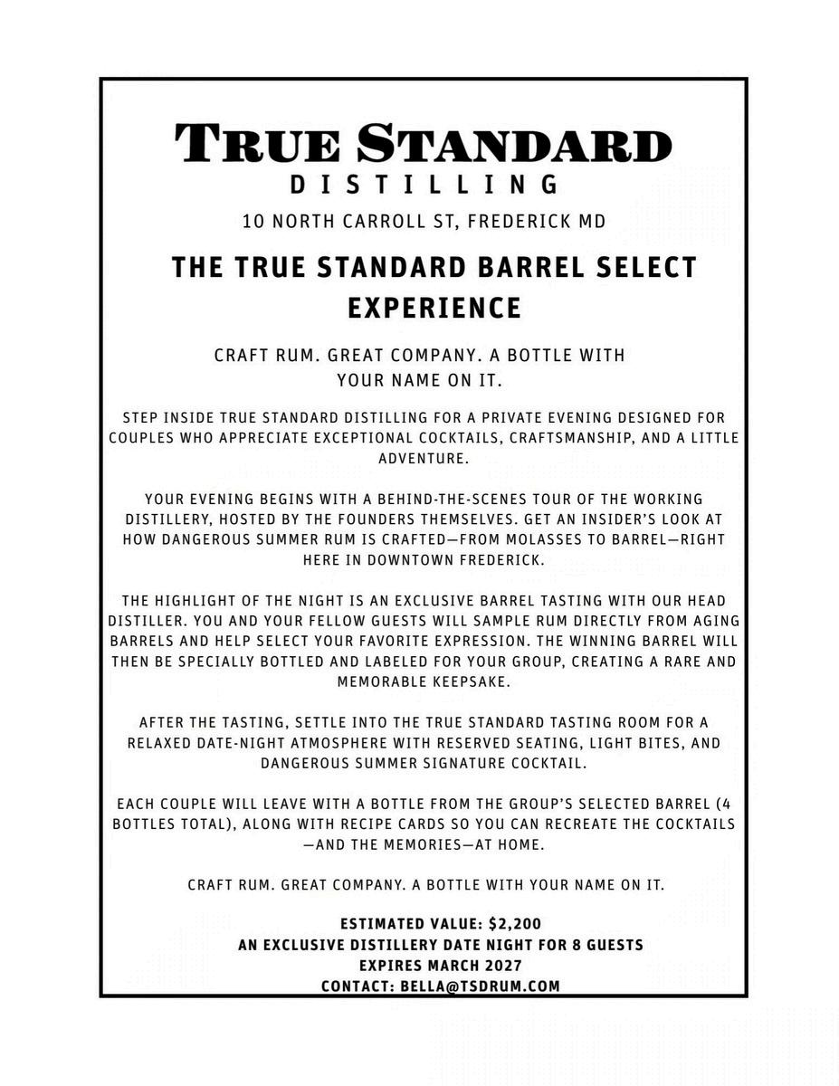 As a special offer, Boone & Sons will match the value of the experience to the value of the winning bid (if it exceeds $10,000), up to $20,000. (For example, if the winning bid is $14,500, the value of the experience will increase to $14,500).