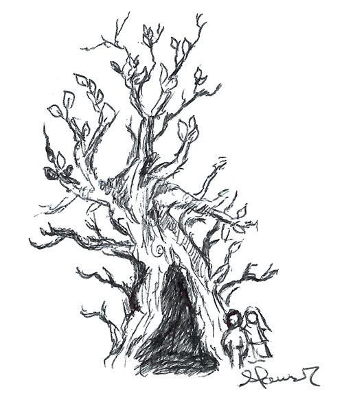 Certa vez, no fim do dia, Adão voltava, tranquilamente, da fazenda onde trabalhava olhando os pássaros e as plantas do caminho. Já estava começando a escurecer, quando ele chegou ao morro, perto da Capela Olhos D’água, e começou a escutar uma zueira que aumentava e se aproximava dele cada vez mais.