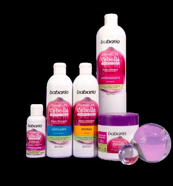 Babaria amplía su línea de Cebolla con dos nuevos champús: Anticaspa y Repara, dirigidos al control de la caspa y a la reparación e hidratación intensiva del cabello, manteniendo su efecto fortalecedor. Con extracto de cebolla como ingrediente clave, están disponibles en formatos de 380 mililitros y son 100% veganos, dermatológicamente testados y certificados por Aenor.