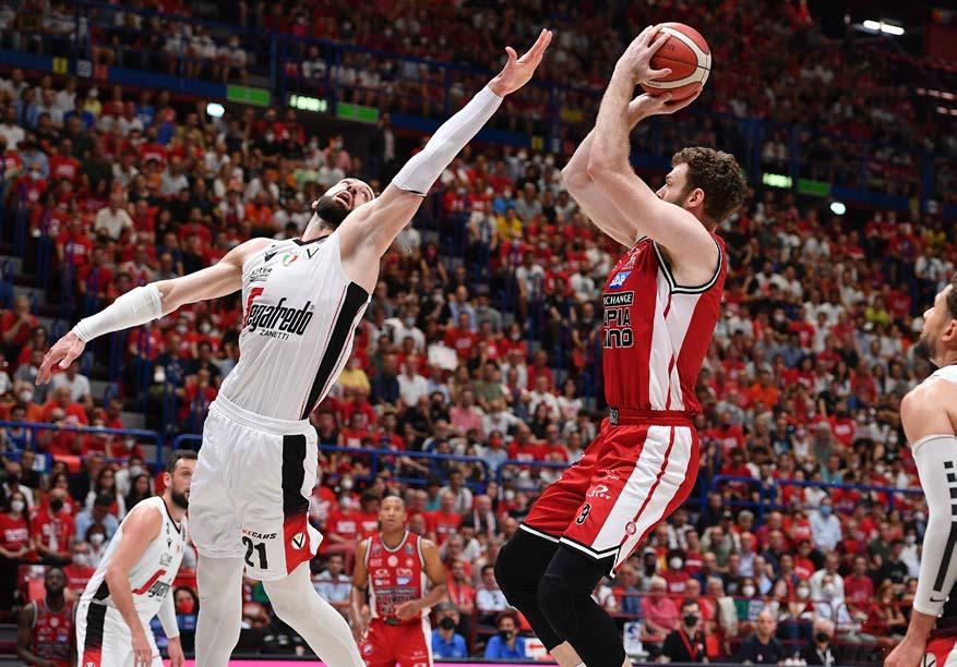 Nei nove mesi successivi quella sera è cambiato tanto. Se non tutto. La pandemia è stata debellata, almeno in gran parte, e il mondo è tornato a marciare regolarmente. Una guerra è scoppiata in Ucraina e da quella guerra sono scaturite le defezioni di giocatori in fuga che hanno rinforzato, di tutte le squadre, proprio la Virtus Bologna che altrimenti non avrebbe mai potuto aggiun gere a stagione in corso due fuoriclasse come Daniel Hackett e Tornike Shengelia. La stessa Virtus ha vinto l’Eurocup, renden do la propria stagione vincente, ha vinto la regular season senza mai perdere in casa, ha battuto l’Olimpia nella gara di Bologna condizionata dal Covid come quella di andata. Nove mesi dopo, la Virtus sembrava ancora più forte e difficilmente battibile, con il fattore campo a favore.