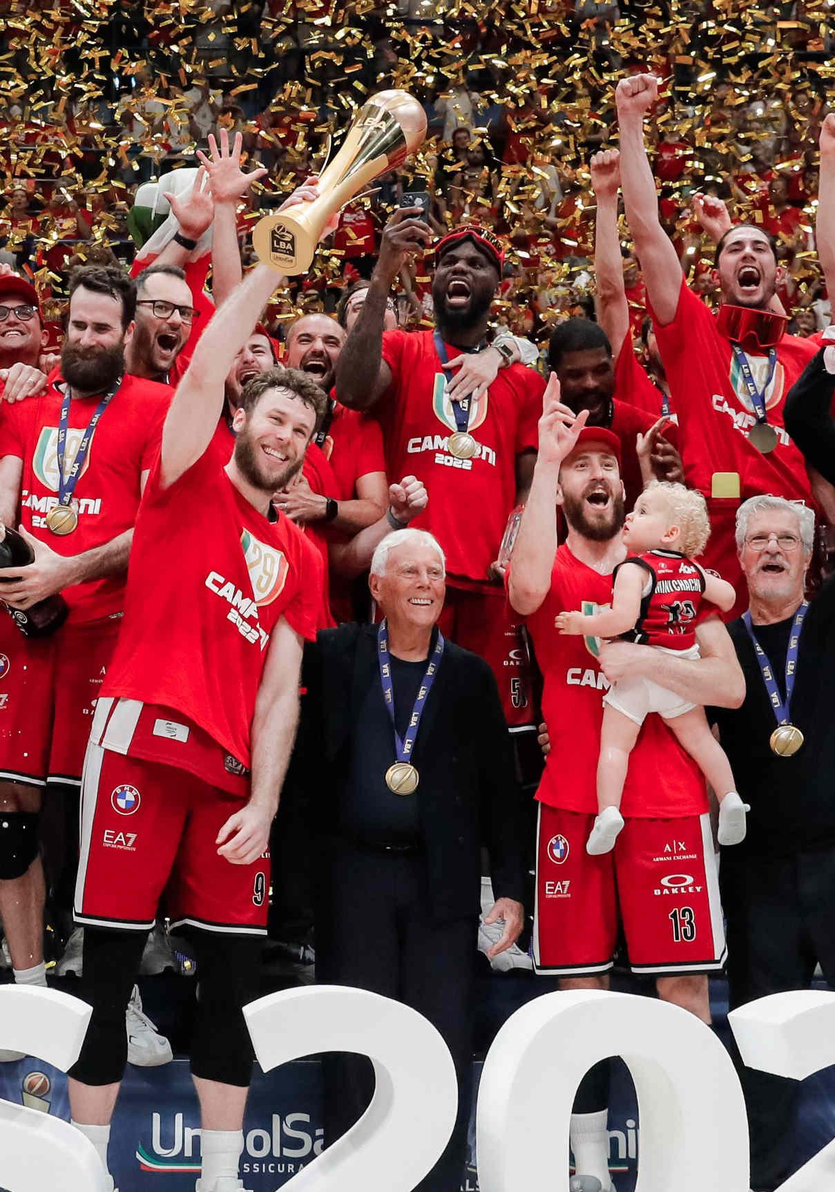 Il tuffo di Bob McAdoo, un artista spinto dal clima a diventare gladiatore, la stoppata di Andrew Goudelock che riflette esattamente lo stesso concetto sono quasi un segno del destino. Sono state il rovesciamento delle abitudini. La squa dra di quest’anno non aveva bisogno di modificare pelle, perché ha difeso dal primo giorno. La difesa è stata la cosiddetta “Calling Card” dall’inizio dell’anno. Shavon Shields che agisce da prima punta in attacco ma poi difende su Te odosic; Devon Hall che non si fa mai superare da nessuno; Nicolò Melli che marca tutti, dai centri ai playmaker; Kyle Hines che è il muro per antonomasia del basket europeo. Questa è stata l’Olimpia 2021/22. L’Olimpia e la sua gente.