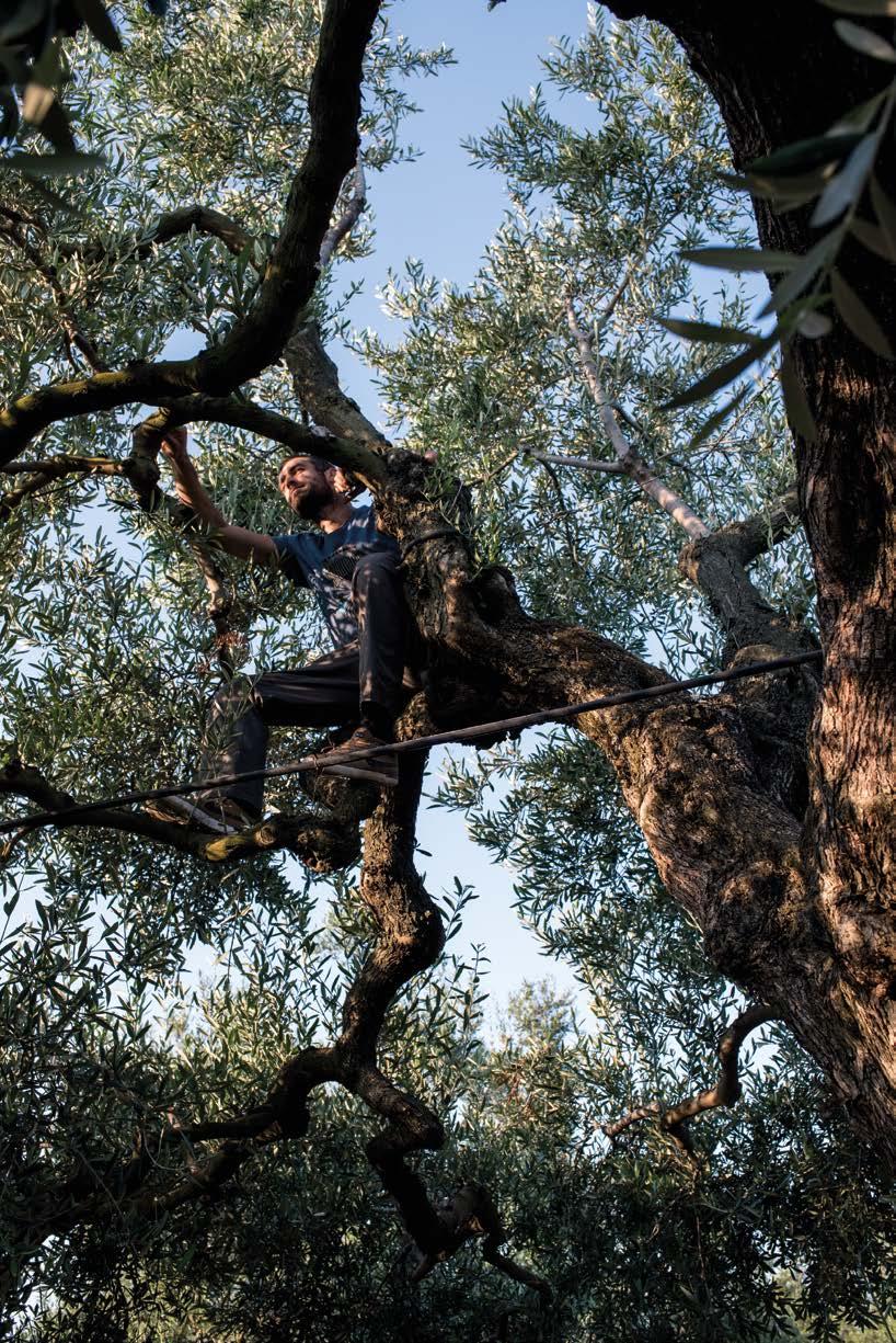 amicizia tra l’autore e le Gabrielloni, quindi il fo cus sul territorio di Recanati, i campi olivetati, il frantoio e le sue donne, la raccolta delle olive e la frangitura, il casolare in cui la casa di campagna diventa teatro dell’ospitalità e del buon mangiare: maestra di cucina è Cesarina, custode della tradi zione gastronomica locale, e in cucina Elisabetta e Sonia. Quindi gli oli, dal Solivo al Laudato, dalla collezione dei monovarietali Virgoro (Ascolana dura, Coroncina, Piantone di Mogliano, Mignola) e infine i condimenti della linea Sapor. A chiudere il racconto per immagini e testi del volume le te ste di serie, ricercatissime ma proprio per questo a tiratura limitata, Emilio, l’olio dedicato al padre, che a Recanati si dice babbo; e i super esclusivi Aurum, nelle due versioni: con anello di foglie d’o livo che abbraccia il collo della bottiglia (forgiato a mano in argento 925 e bagnato in oro) e con fogliolina di olivo (vera, della varietà Mignola) che abbraccia il collo della bottiglia (la foglia viene di sidratata e bagnata in oro per elettrodeposizione, e nel margine uno Swarovski). Non finisce qui, è evidente. Perché la storia (come tutte le belle storie) ovviamente continua.