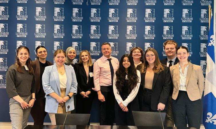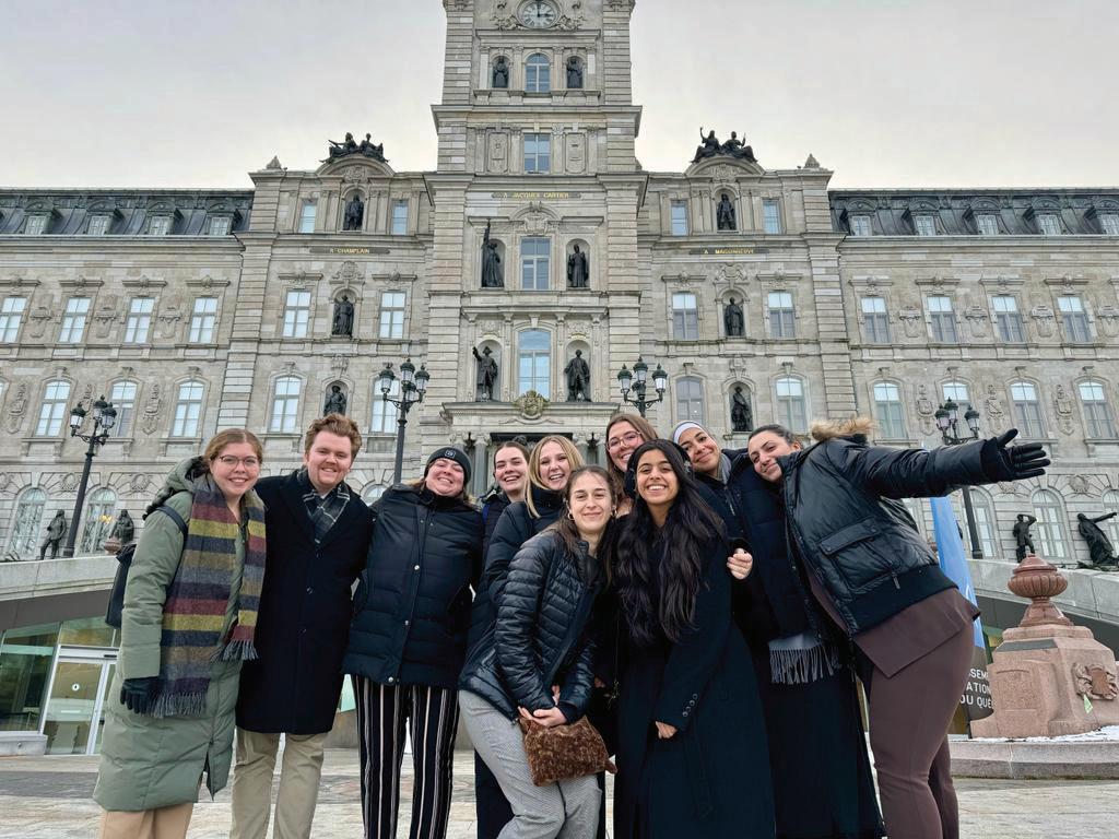 Our morning began with an exciting meeting with Sébastien Bovet, Radio-Canada’s Bureau Chief at the National Assembly. We loved learning about how political news is reported, and he even gave us the opportunity to try our hand at being TV reporters! We then enjoyed meeting Nora Loreto, a freelance journalist based in Québec City, with whom we discussed political activism and the practical side of engaging people in politics. Our morning concluded with a meeting with Julie White, who shared insights from her experiences as a former staffer and present-day government relations specialist.