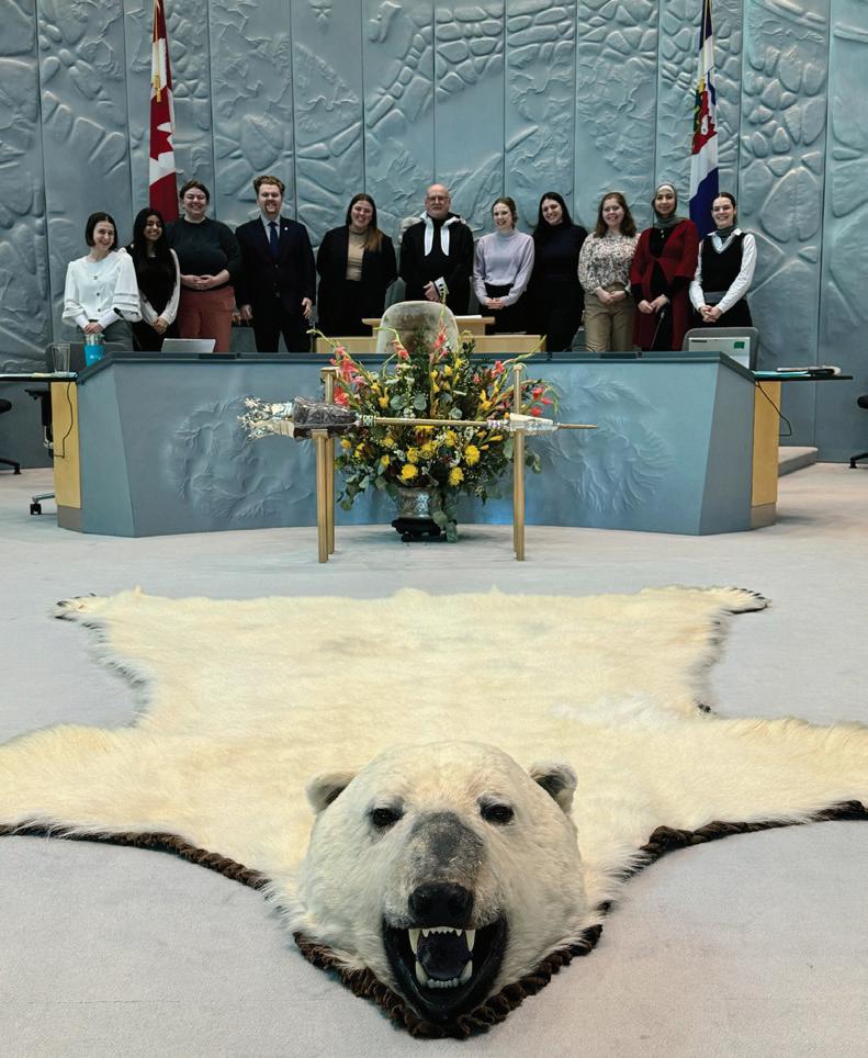 Our day began by observing the Standing Committee on Accountability and Oversight. The committee, composed of the Regular Members of the Legislative Assembly, provided a firsthand look at how a consensus-style legislatures operate. Though there were differing opinions, every Member was given the chance to share their views, and the committee navigated disagreements collectively. During our lunch with these MLAs a few hours later, we were surprised to hear them discuss many of the same pressing issues that Ontario’s MPPs often raise, giving insight into the shared challenges faced by northern and rural communities.
