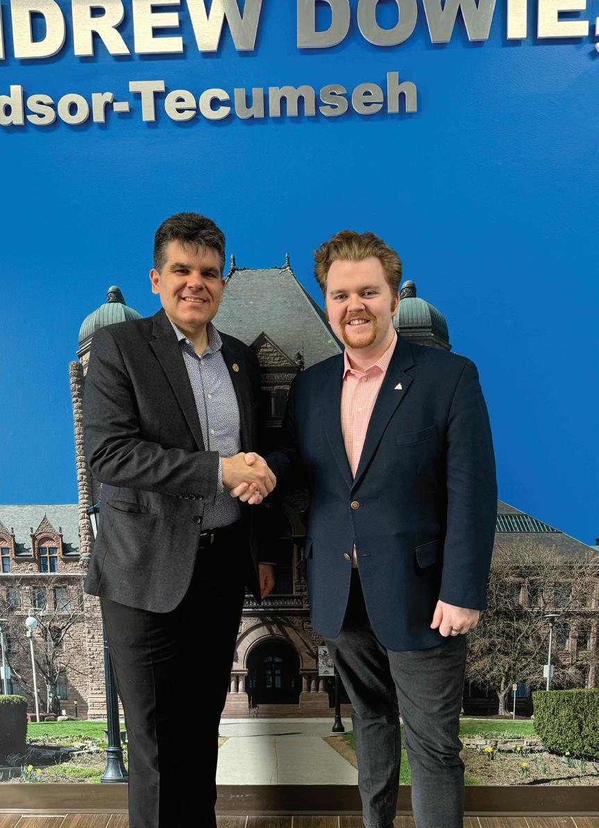 chance to join MPP Dowie in the riding. While I was in Windsor— Tecumseh, I accompanied the Member to several community events, visited local businesses where he recognized their hard work, and joined him on a riding visit with the Minister of Seniors and Accessibility. MPP Dowie also introduced me to the Mayor of Windsor, Drew Dilkens, and several other local elected officials.