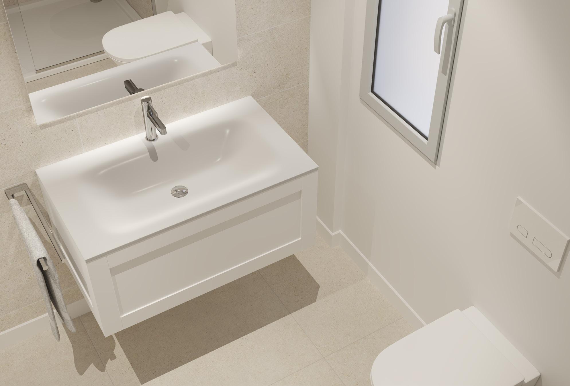 MUEBLE SUSPENDIDO DE 1 CAJÓN DE 30 CM DE ALTO. ACABADO PORCELÁNICO.