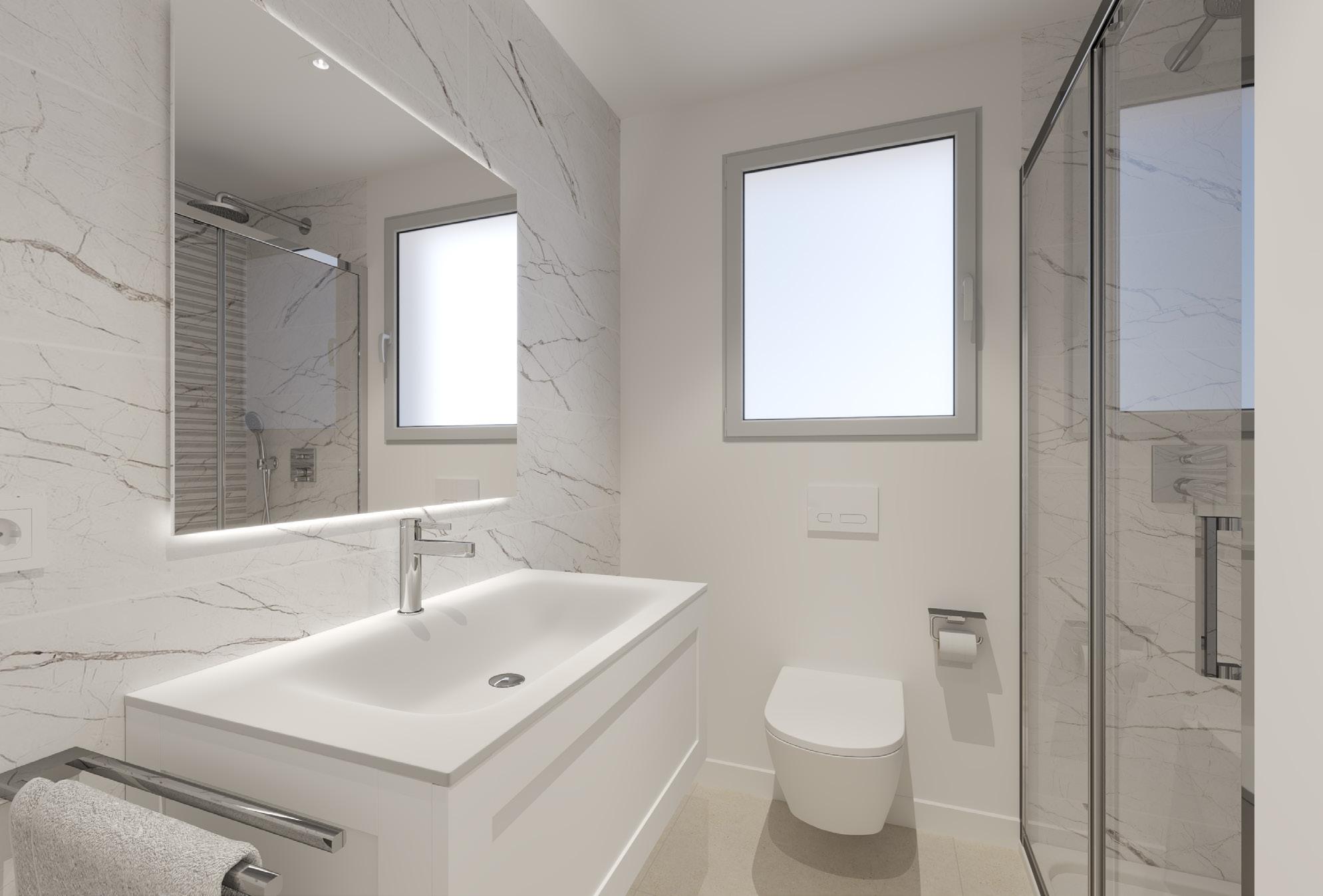 Une salle de bains qui allie le luxe à la fonctionnalité. Tous les détails ont été soigneusement sélectionnés afin d’offrir le confort et le luxe qui feront de la salle de bains l’espace idéal pour la toilette personnelle.