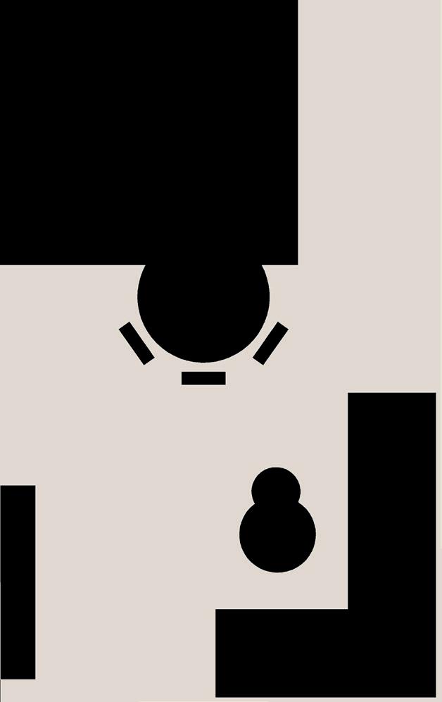 Dans les salles de bains, le microciment du sol s’étend sur la douche réalisée in situ et sur les murs qui composent la cabine de douche et le mur avec les installations de lavabo. Les autres murs des salles de bains seront peints avec de la peinture à l’émail mat lavable de couleur blanc RAL9010.