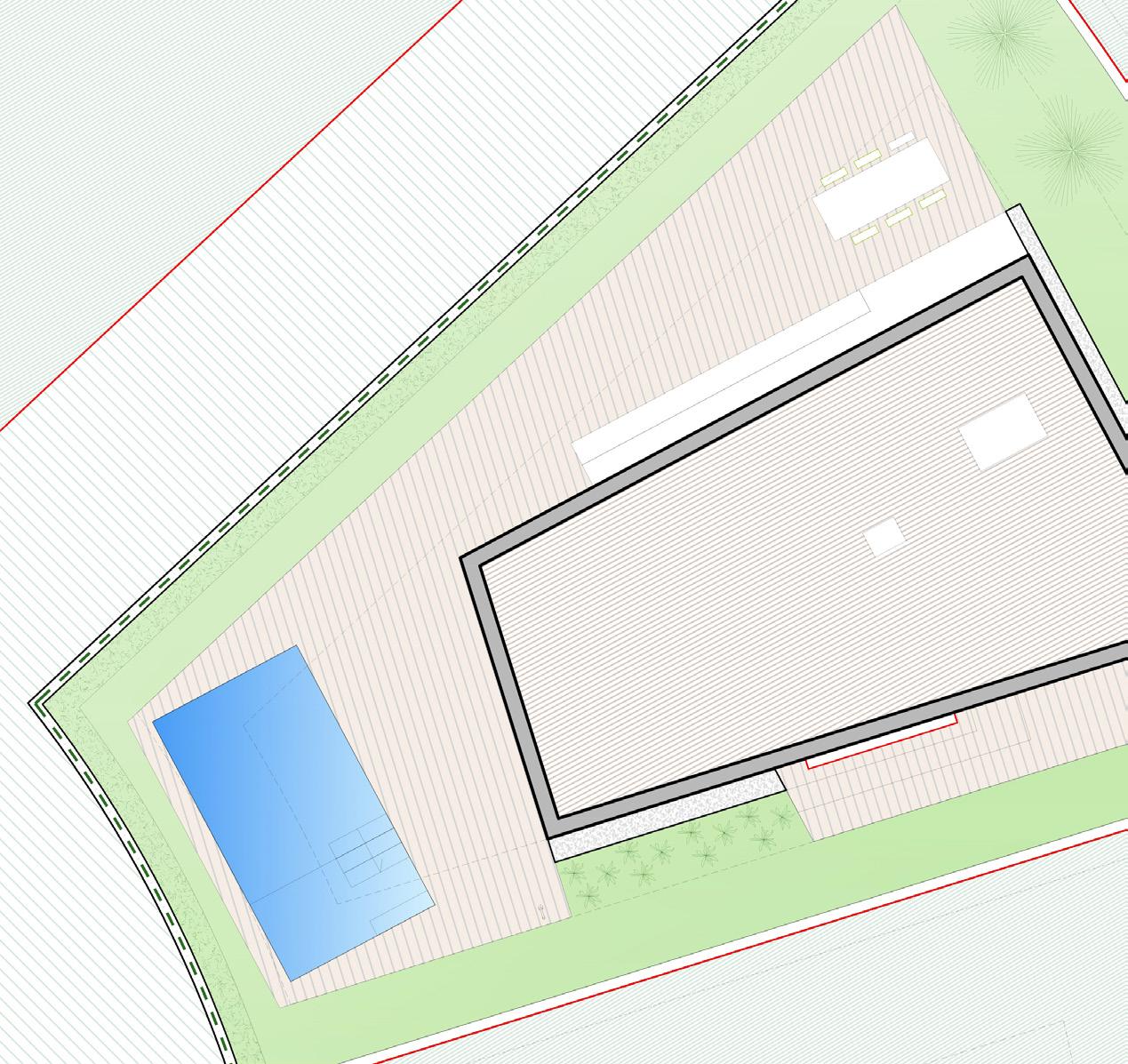 • Haie périphérique sur les limites où il n’y a pas de haie, avec des cyprès Sempervirens de 0,80-1,00 m de hauteur plantés à 3 pcs/ml.