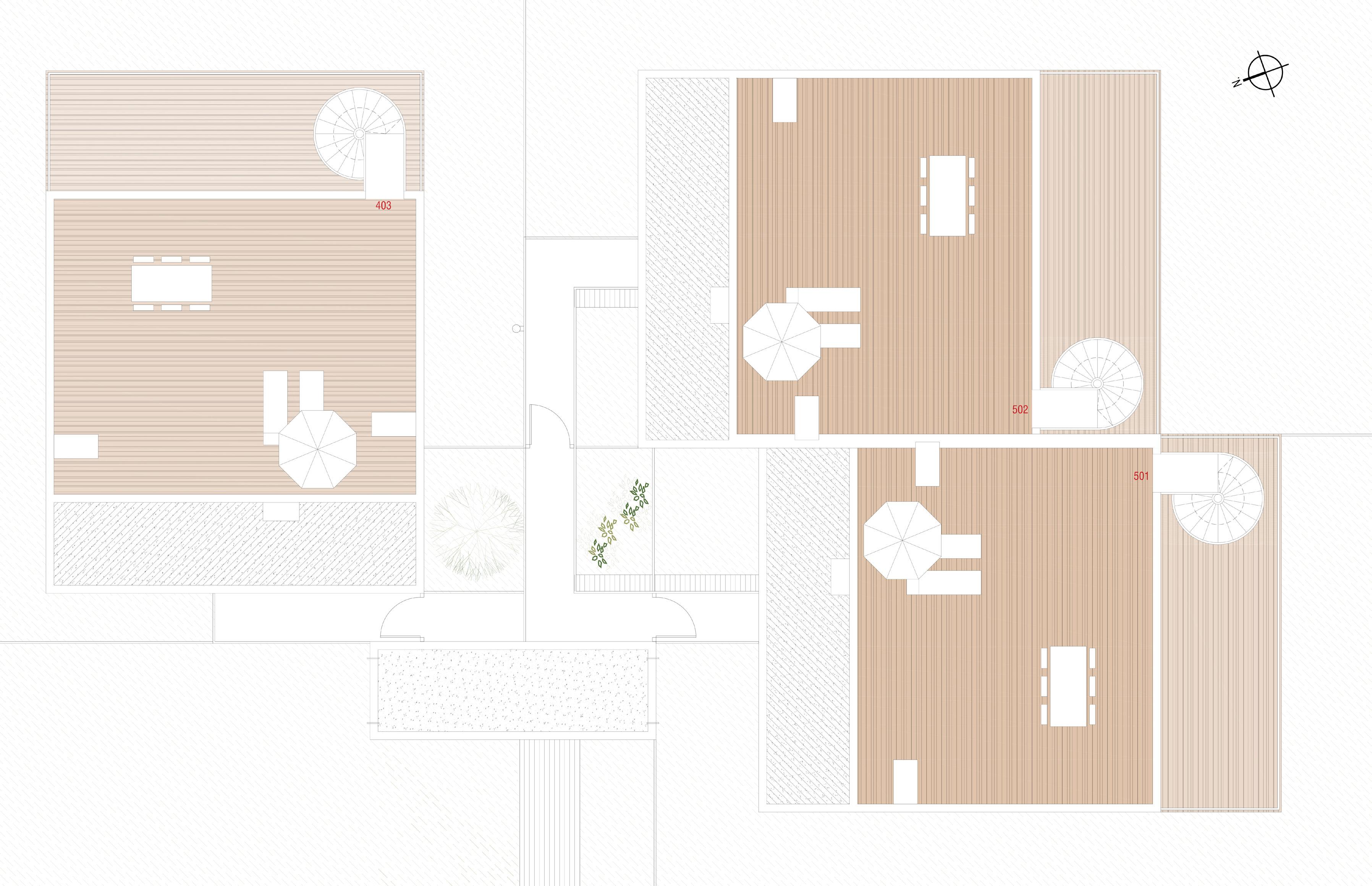 Floors on outdoor terraces: The same model with anti-slip finish will be installed.