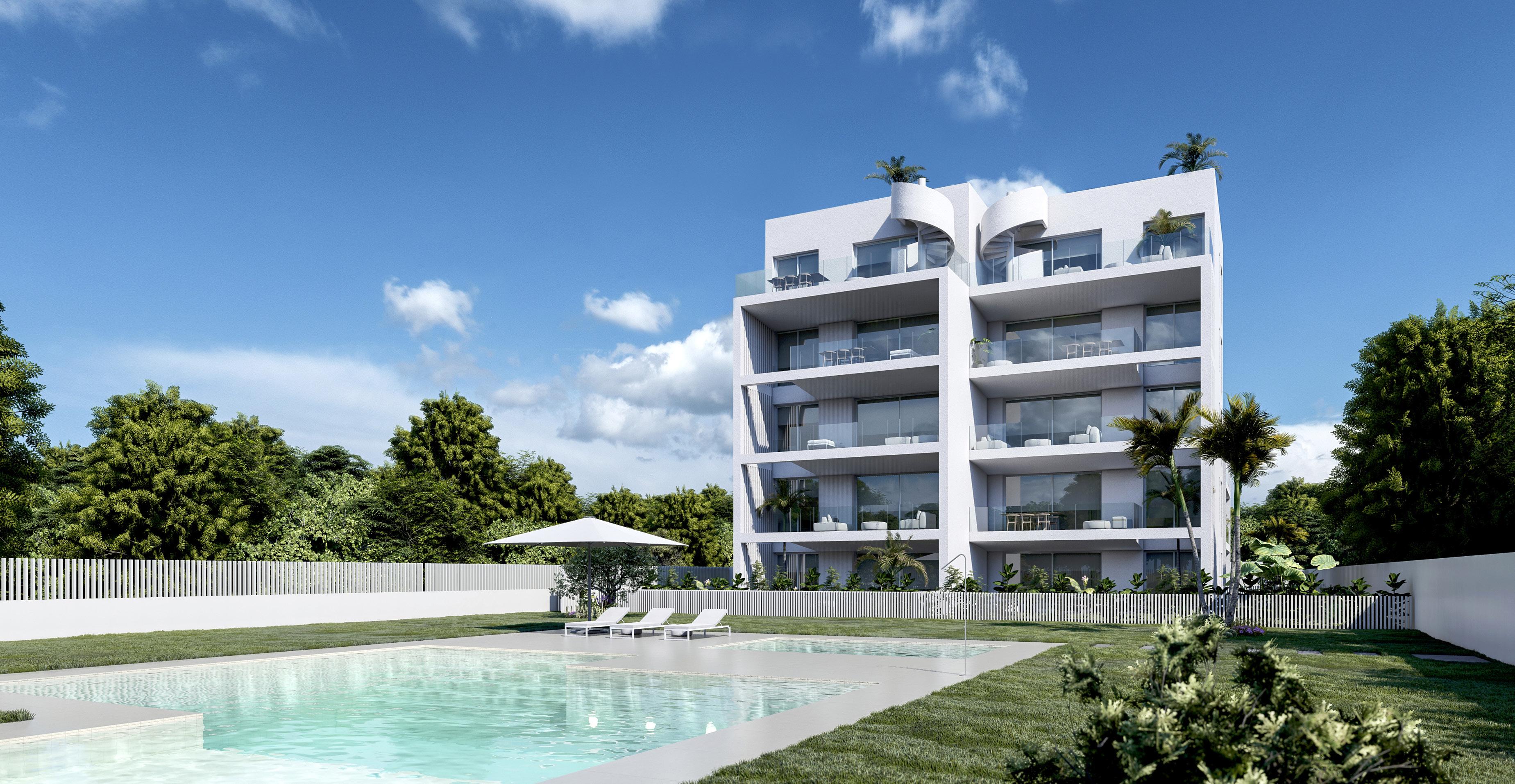 Additionally, the residential complex features spacious gardens that will allow you to enjoy the Mediterranean climate and cool off in the pools. Each apartment comes with its own storage room where you can keep your belongings and a private parking space under a pergola to protect your car.