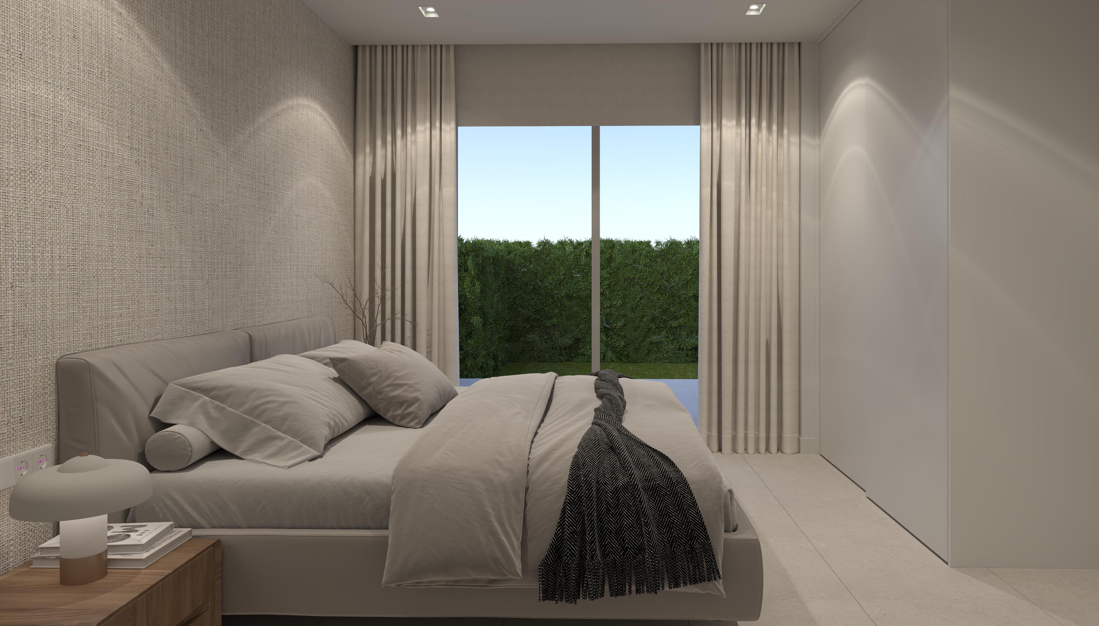 Motorised extruded aluminum roller blinds are in the same color as the carpentry in bedrooms and in the rest of rooms will be installed in those gaps where it is required according to energy demand study.