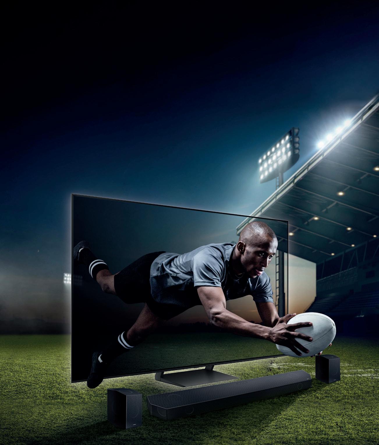 WE’RE READY FOR THE RUGBY WORLD CUP. ARE YOU? *Via Redemption. Promo valid July 12th - August 29th 2023. Terms and conditions apply. Offer eligible on other selected Samsung TVs. For full list see terms and conditions. Buy a Samsung 2023 OLED TV and redeem a bonus Sky Sport Now subscription*. You’ll be on the edge of your seat with stunning visuals. Add a Q-Series Soundbar for complete immersion. It’s as if you’re there. Get the Best Seat in the house