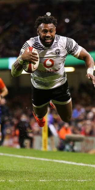 WAISEA NAYACALEVU scores a spectacular try for the Flying Fijians.