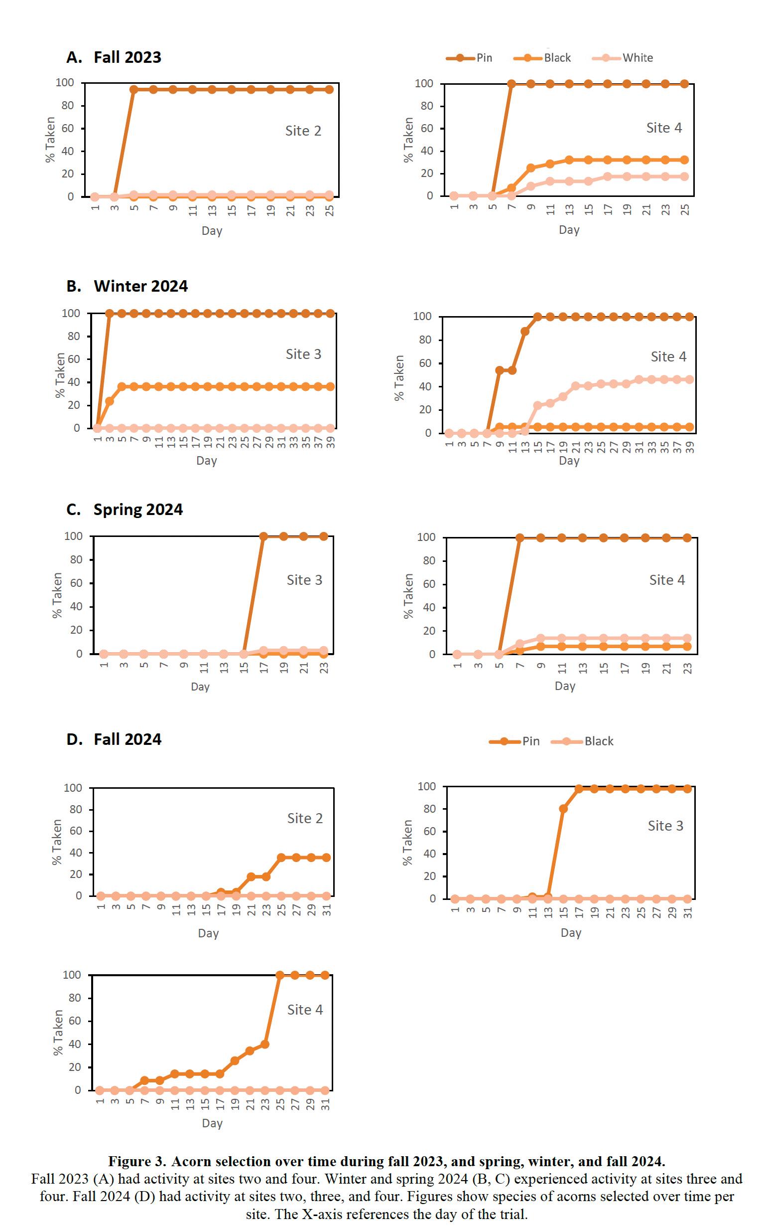 Richardson K, Lichti N, Swihart R. 2013. Acorn-foraging preferences of four species of free ranging avian seed predators in eastern deciduous forests. Condor. 115(4);863–873.