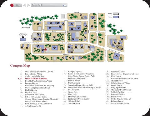 Dole Hall/Administrative Wing Burrage Library Riethmiller Blackman Art Building Olivet Congregational Church Eta Psi Kappa Physical Plant Criminal Justice Center C.S. Mott Academic Center (Beman Observatory, Boucher Memorial Lecture Hall, Planetarium) Ruth Rawlings Mott Auditorium Adelphic Alpha Pi