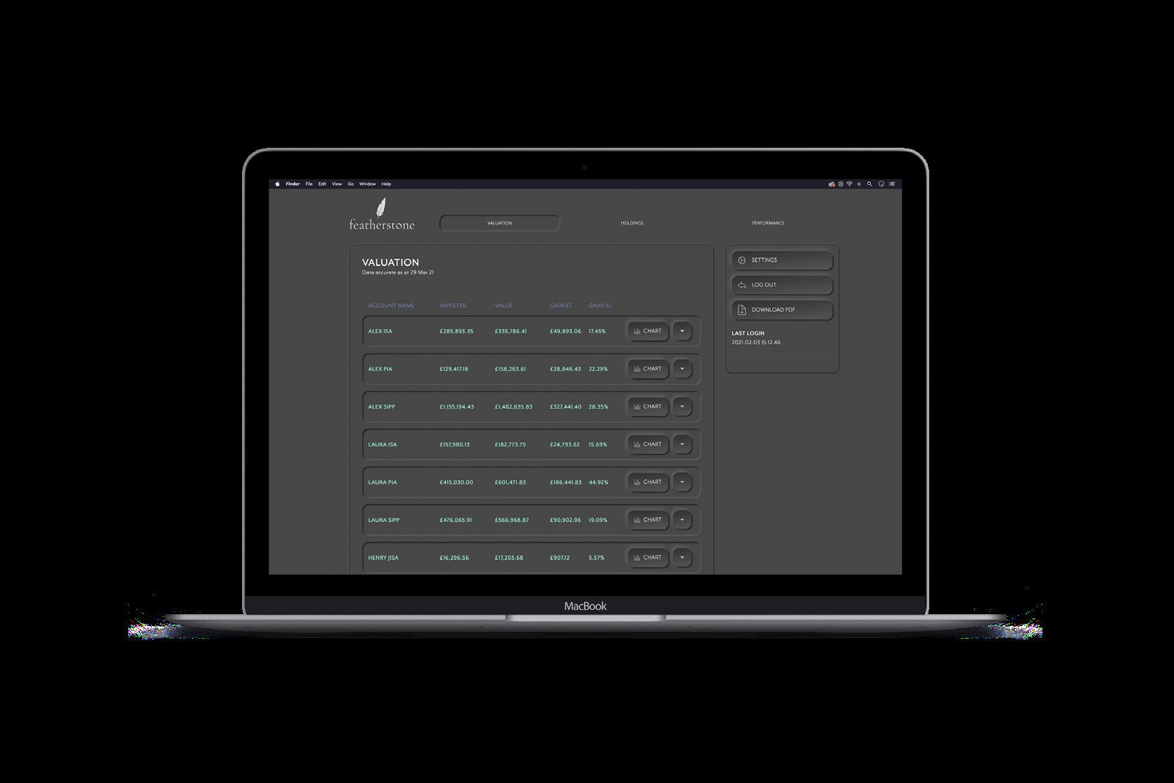 Clients have access to daily updated and interactive valuation, holdings and performance charts and data. This can all be downloaded into a PDF with a single click.