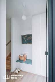 Une entrée STRUCTURÉE ET FONCTIONNELLE. ON ARRIVE DIRECTEMENT SUR L’ESCALIER COLORÉ QUI HABITE LA PIÈCE. EN PARALLÈLE, LE MEUBLE D’ENTRÉE RESTE BLANC POUR COMPENSER LA MASSE COLORÉE. ON TROUVE UN RAPPEL DANS LA NICHE QUI SERT DE BANQUETTE. ON AMÈNE LES TOUCHES COLORÉES PAR LA DÉCO ET LUMINAIRE. POUR AMENER DE LA LUMIÈRE NATURELLE, ON TROUVERA UNE VERRIÈRE AU VERRE STRUCTURÉ QUI DONNE SUR LA FENÊTRE DE LA SDB.