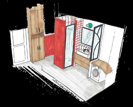 On voudrait y mettre une vraie entrée, une SDB avec des WC les plus indépendants possibles, l’espace buanderie ainsi que si possible un petit coin bureau.
