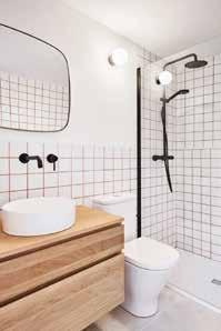 Pour les matériaux et couleurs, on joue sur l’intemporalité du blanc, METAL noir et bois, mais en travaillant sur des associations de petits et longs carreaux et de joints contrastés. On peut jouer la même couleur en rappel sur quelques murs.
