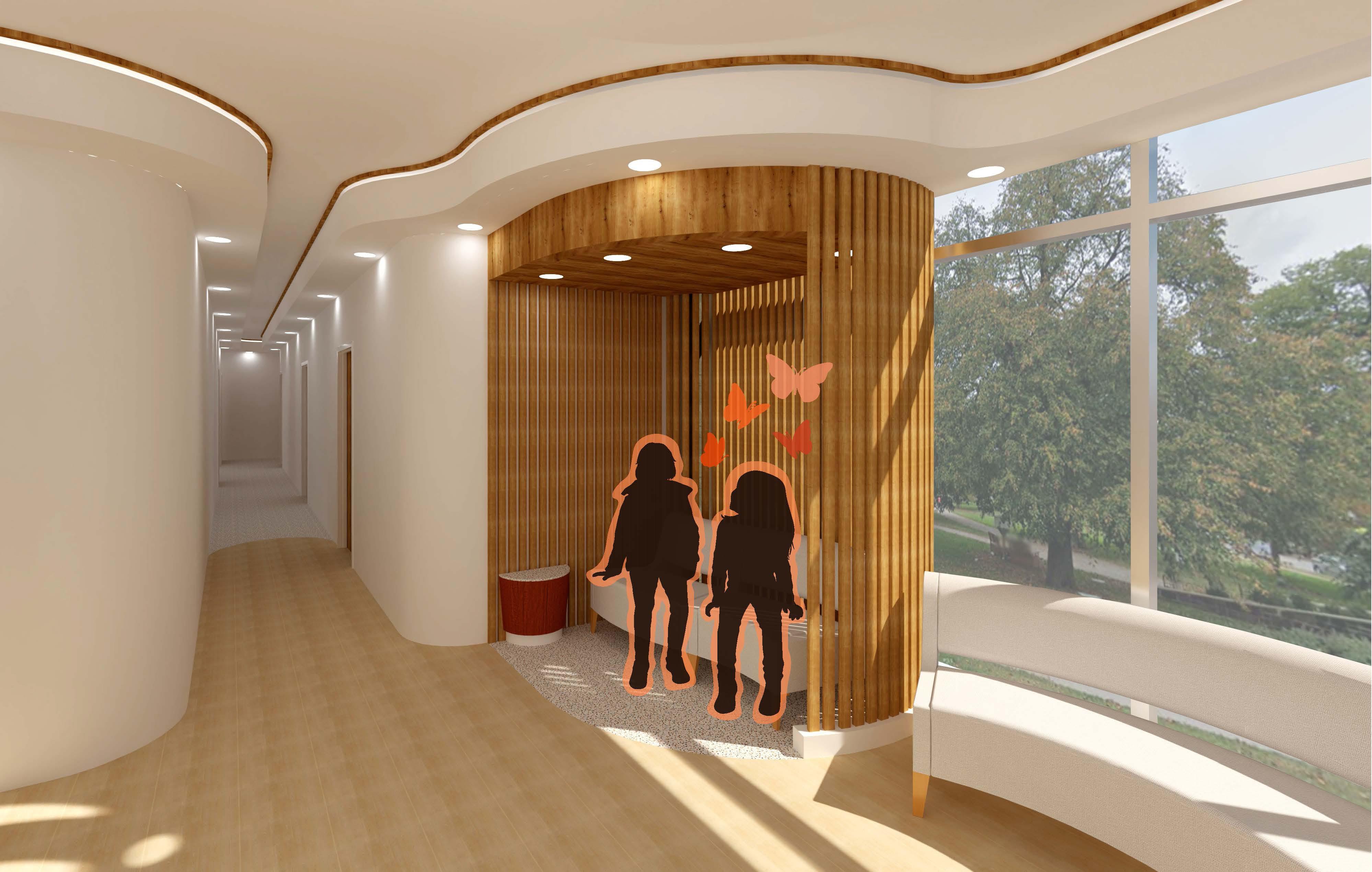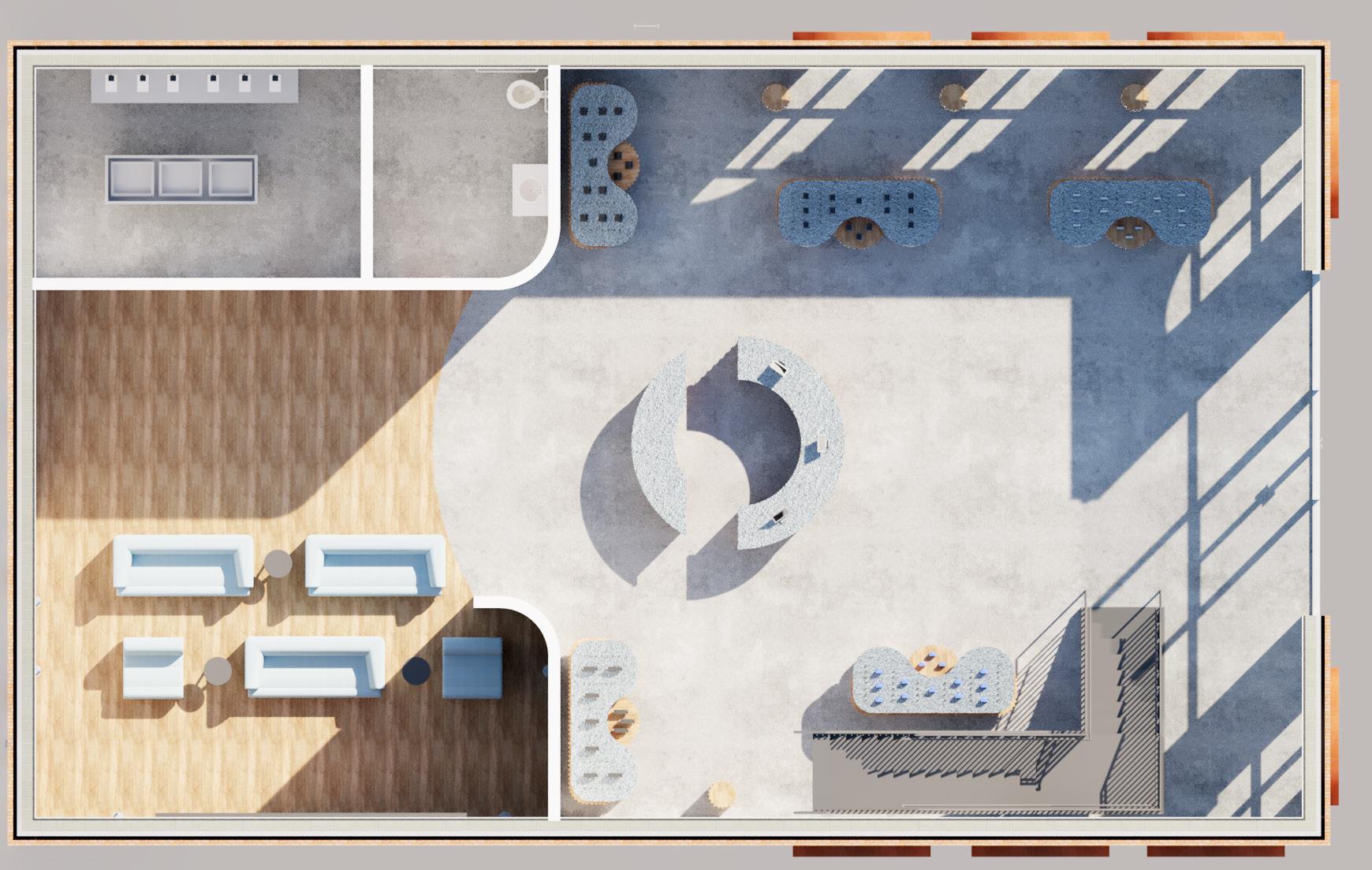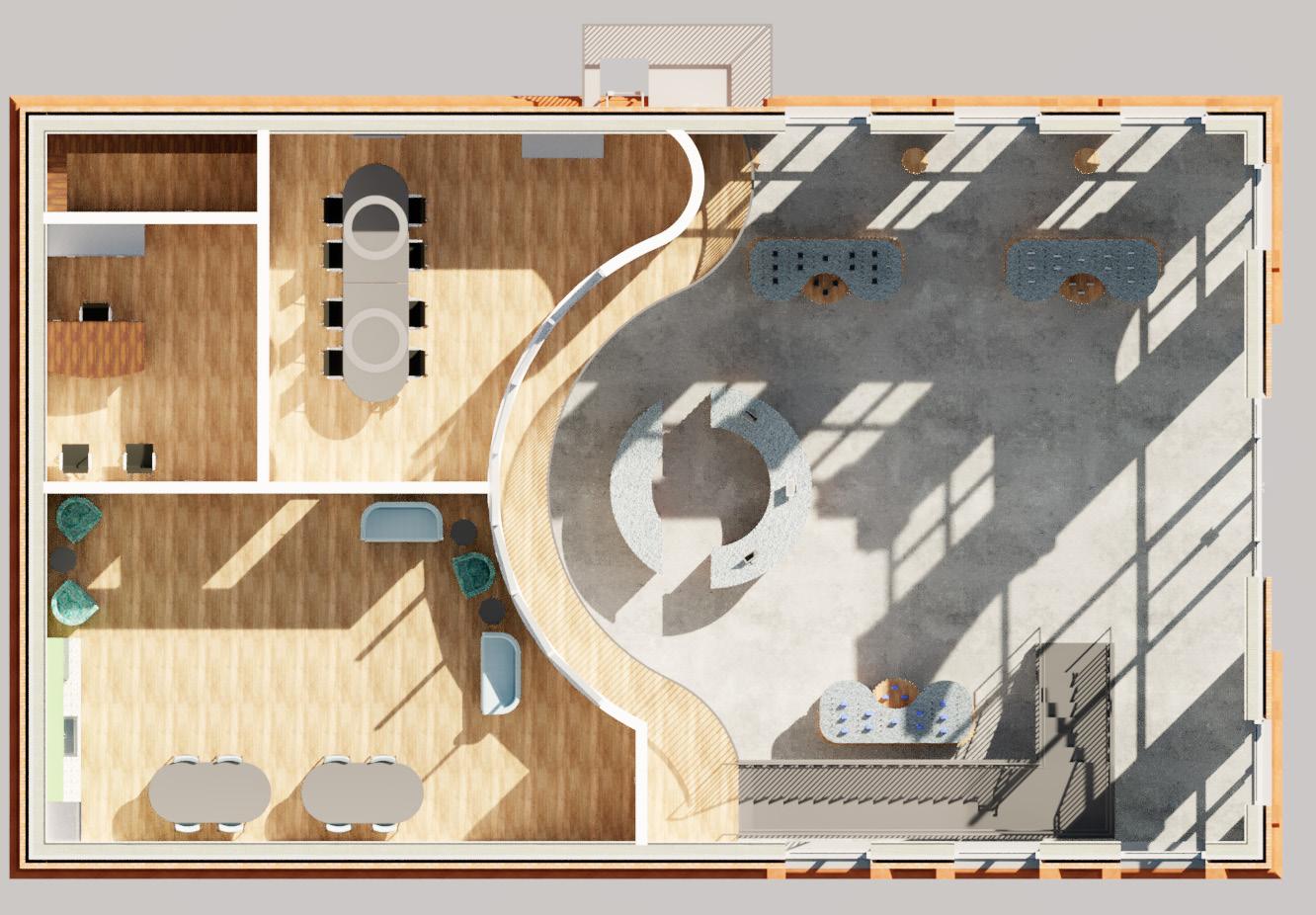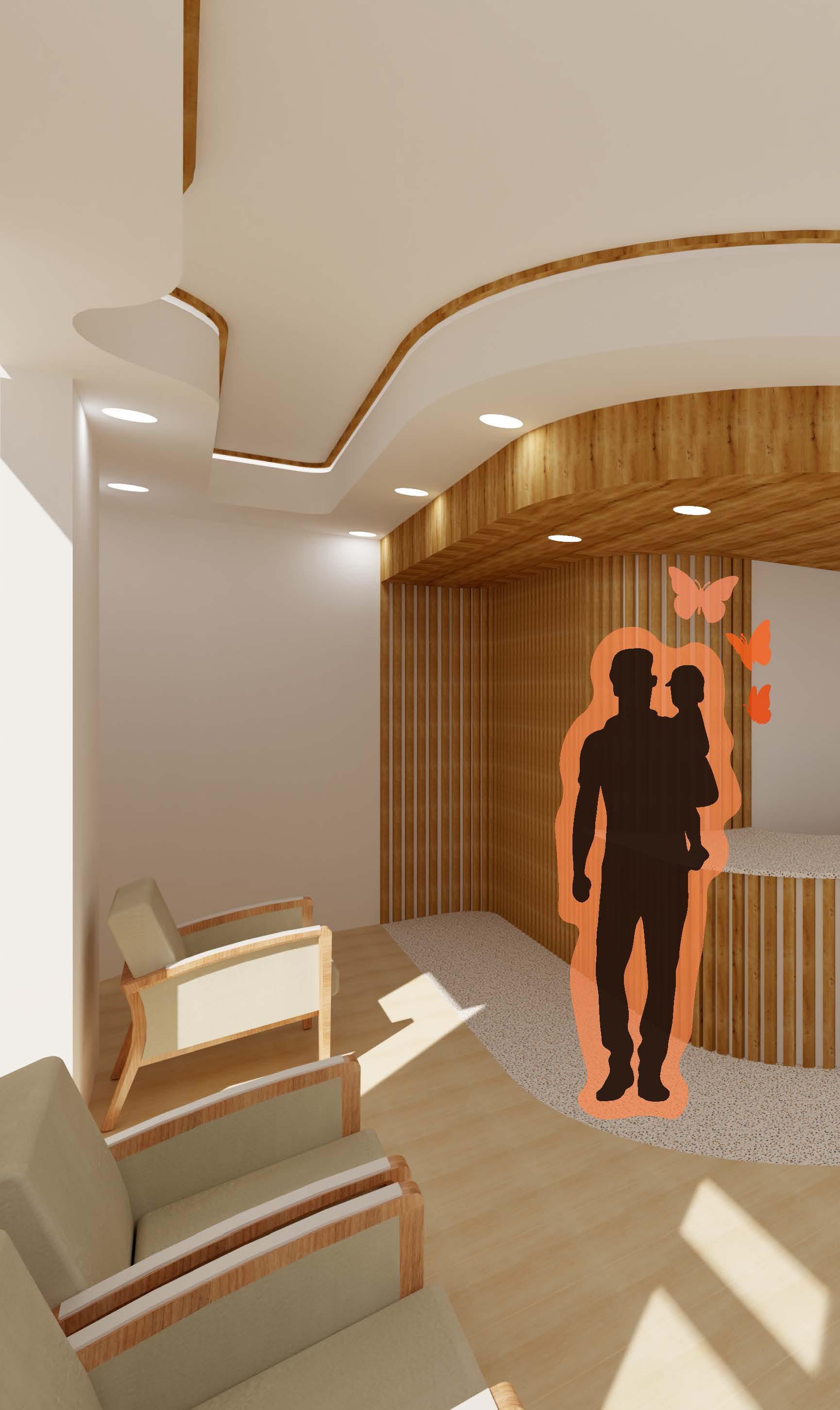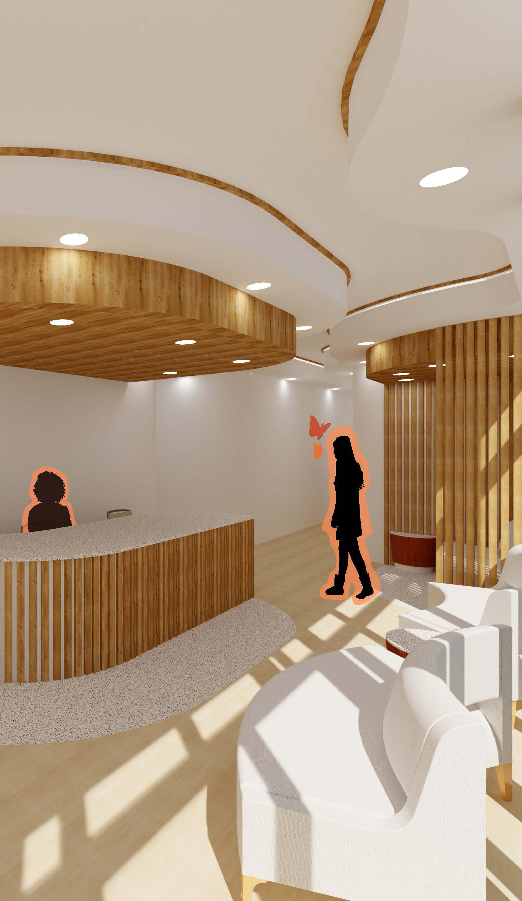 The space is designed to cater to the various journeys and stages of self-discovery by distinguishing clear public and private zones. The design offers freedom to choose within public areas like the waiting area that give users the chance to “fly.” The design further considers the opportunity to implement private zones and alcoves that offer users the ability to be sheltered within “cocoons.”