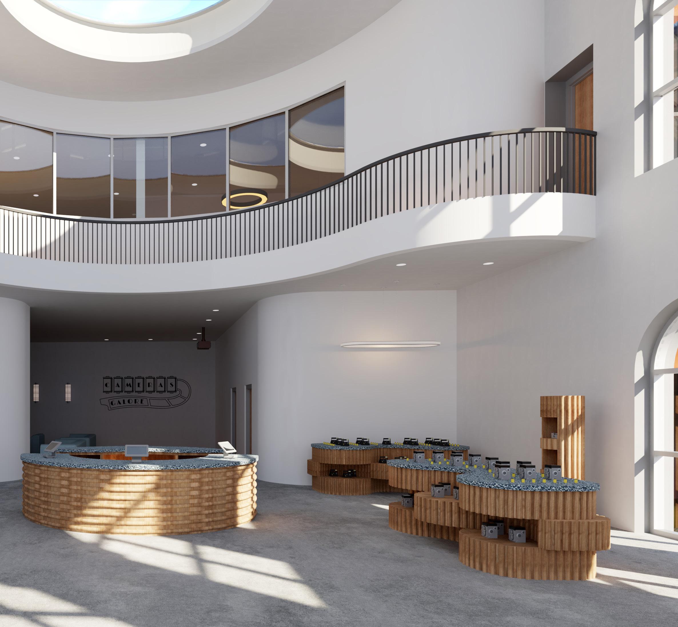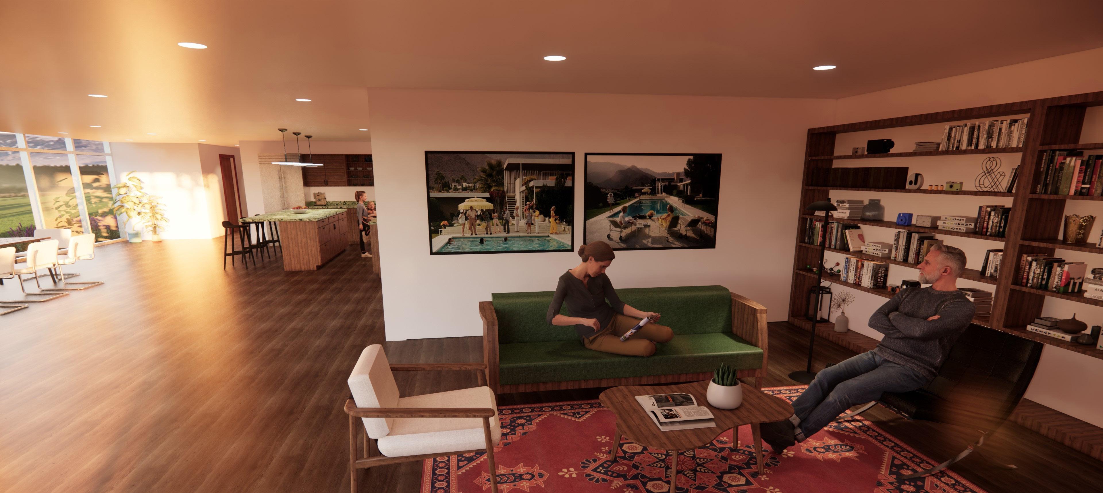 The renderings experiment with the time of day and demonstrate how variations in natural lighting impact the space’s mood.