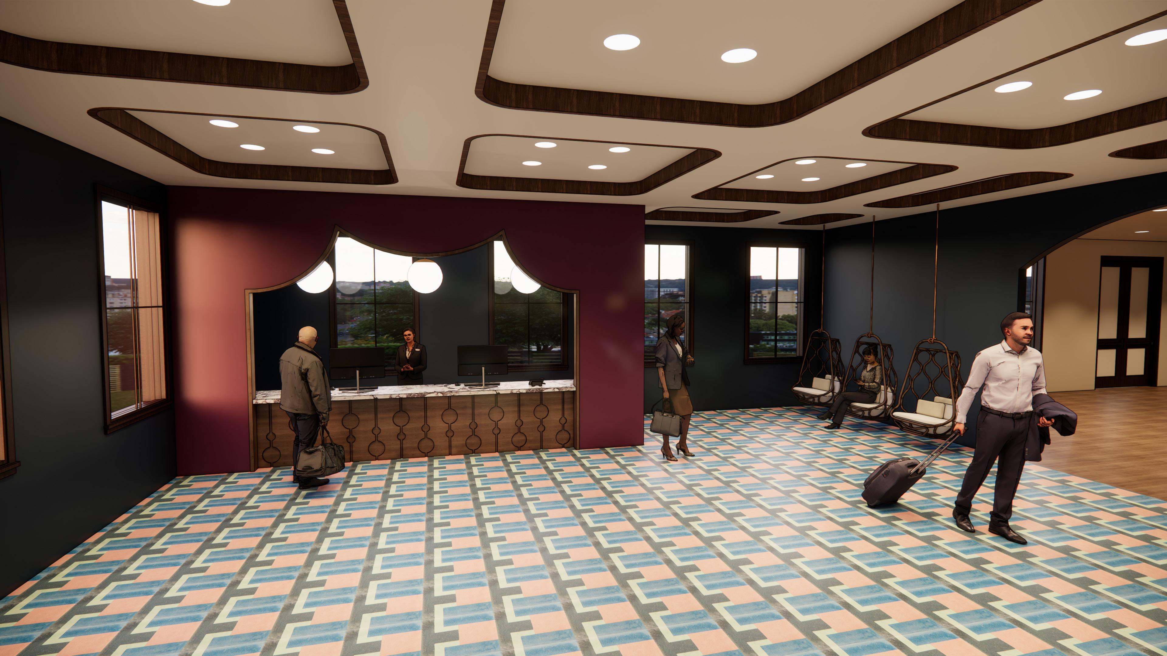 On the first floor, the separation between the main entrance and lobby area from the amenity spaces offers guests a higher degree of privacy and considers acoustical comfort. The public spaces and ADA rooms consider accessibility standards to allow all guests to feel welcomed.