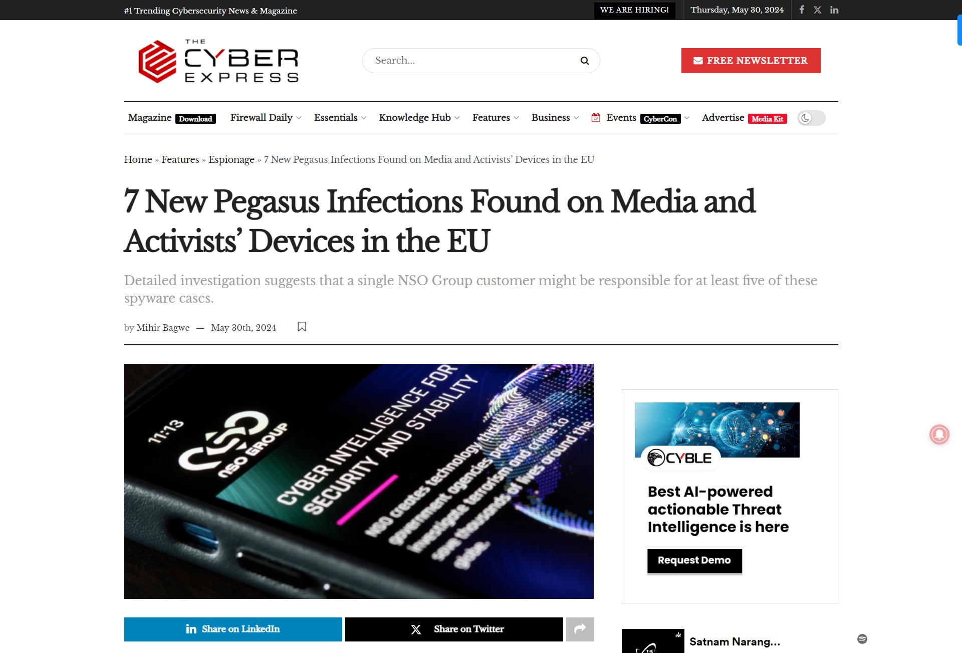 A joint investigation by Citizen Lab and Access Now detailed incidents from August 2020 to January 2023 and concluded that a single NSO Group customer might be responsible for at least five of these cases.