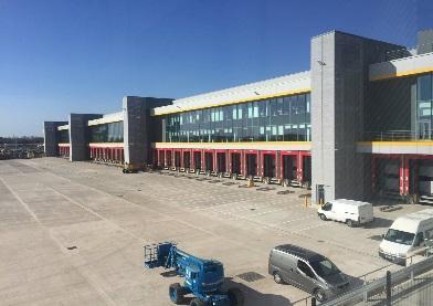 A new sortation hub, 232,506 sq ft parcel hub with two storey integral offices which house a new Call Centre space for the UK International Gateway to other DHL hubs