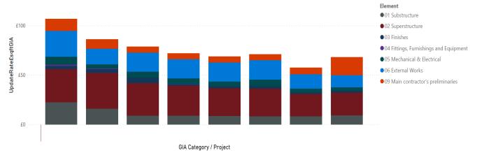 Goodrich’s benchmarking data is solely based on contract data, thereby ensuring that only realworld information is used when compiling the benchmark ranges. The use of ‘real life’ contract data, rather than estimates or contractors’ cost plans, better reflects the fluctuations in materials, labour and rates. The data is continuously updated; this is undertaken on each contract sum analysis and only once the contract is awarded.