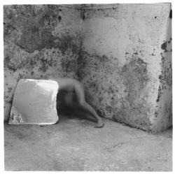 A escolha desses cenários como pano de fundo62 para as colagens se deu, por um lado, pelas possibilidades de intervenção que o espaço aberto dessas fotografias proporcionava e, por outro, pela temática da ruína que elas evocavam, com suas grandiosas construções que param no tempo e são absorvidas pelo vazio; temas que correspondiam com as sensações que eu pretendia construir, de um espaço suspenso no tempo e na memória.