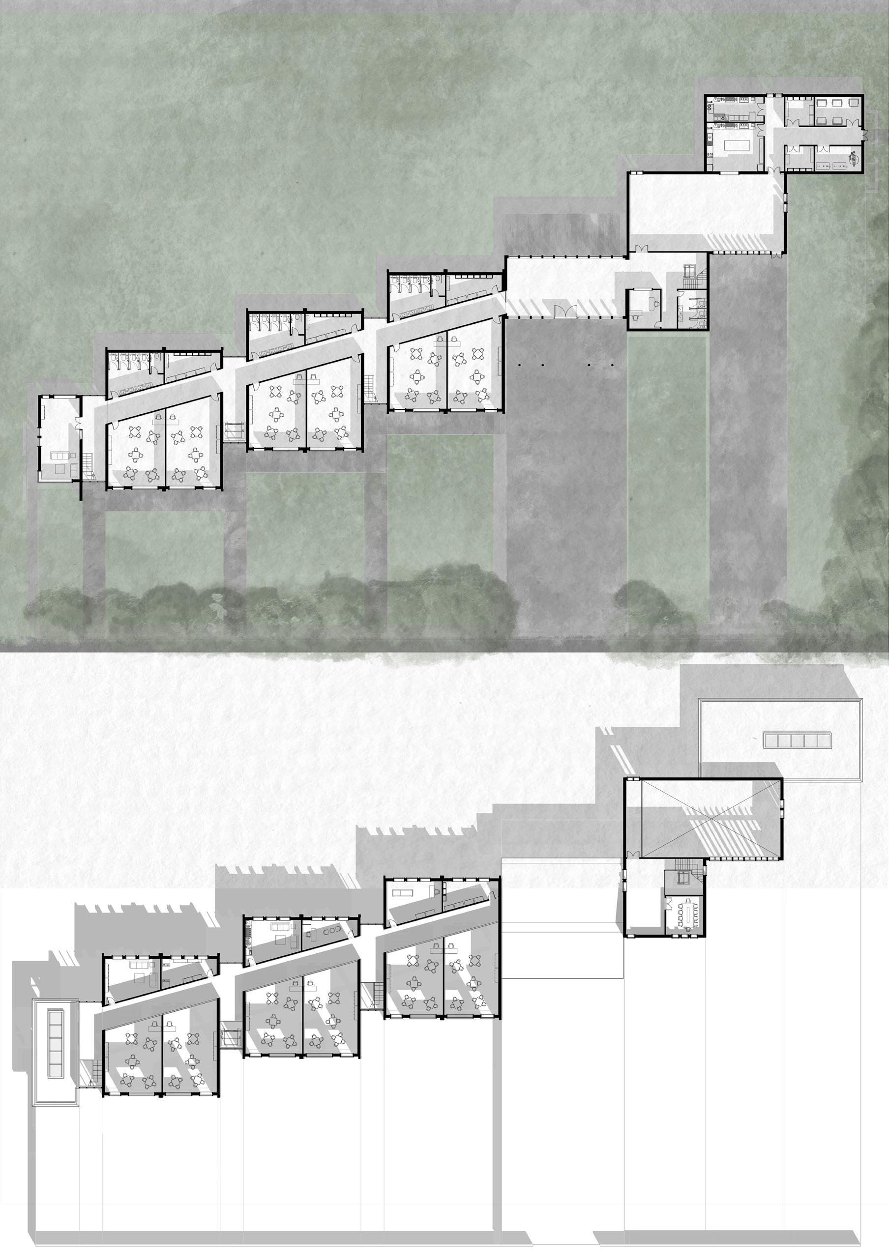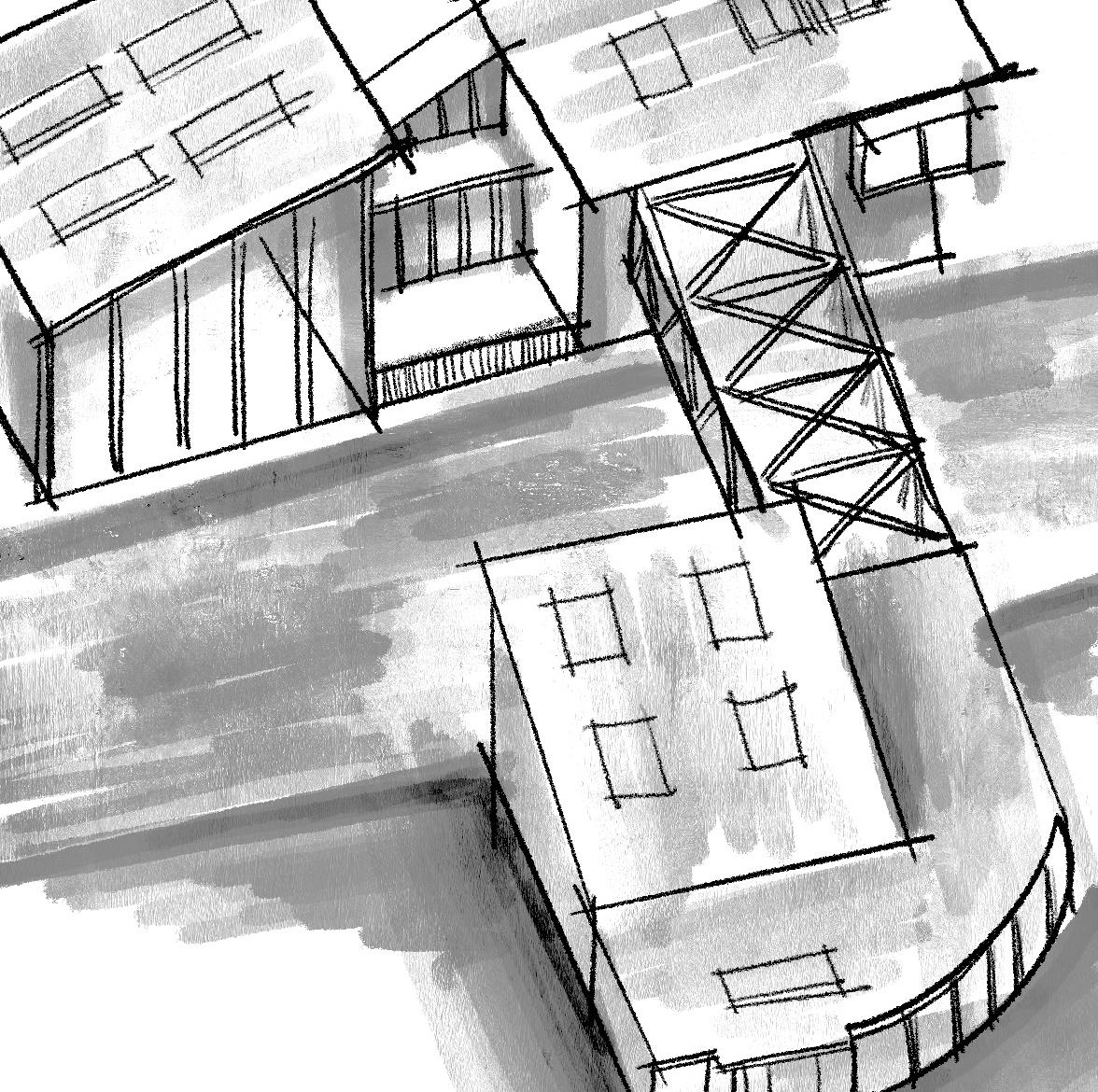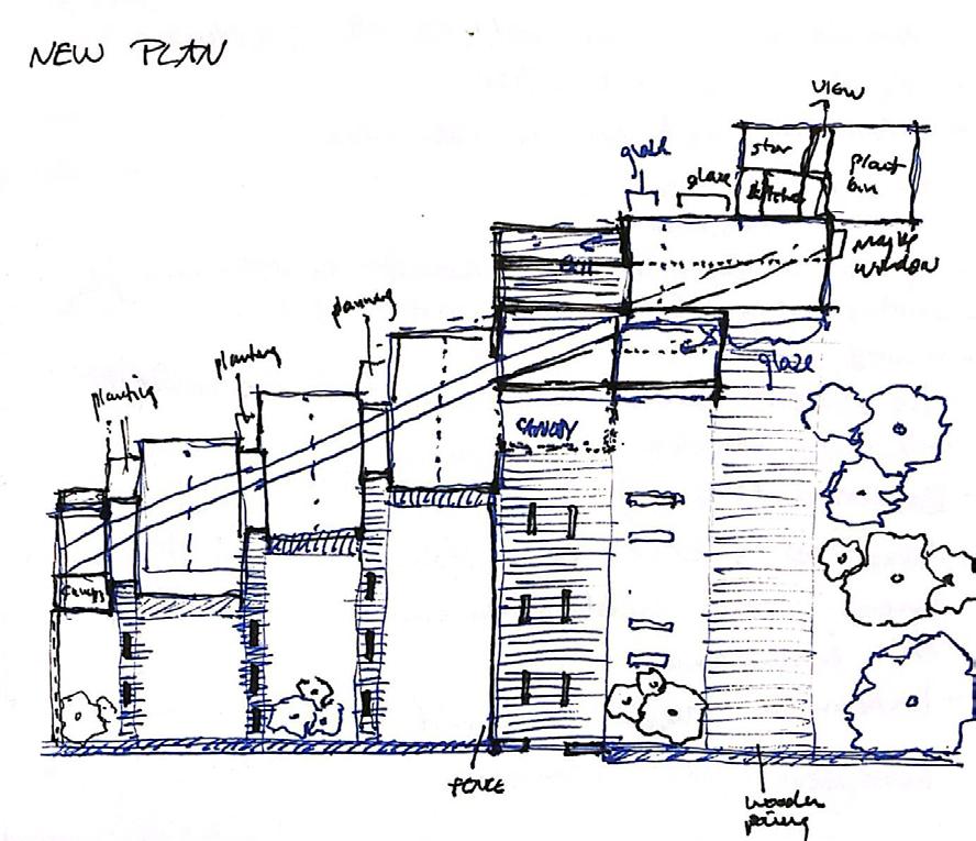 My concept idea arose from my site analysis, using the core ideas of a terrace like facade, the stepwise geometry and the core axis pinning the building elements together. These ideas helped to drive my design forward and remained a prominent feature throught the design process.