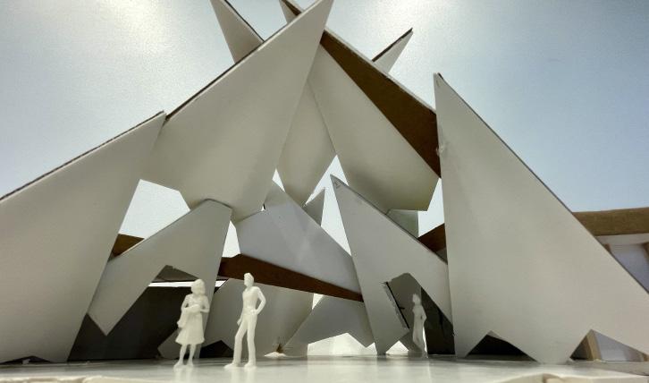 For this project, the brief was to creatre an outdoor theatre stage for shows and plays to be performed at outside of the Holburne Museum. Taking inspiration from the collonade that extended off the main building of the Museum and the Maple leaf treas that cocooned the site, emalgamated these contrastin forms with each other.