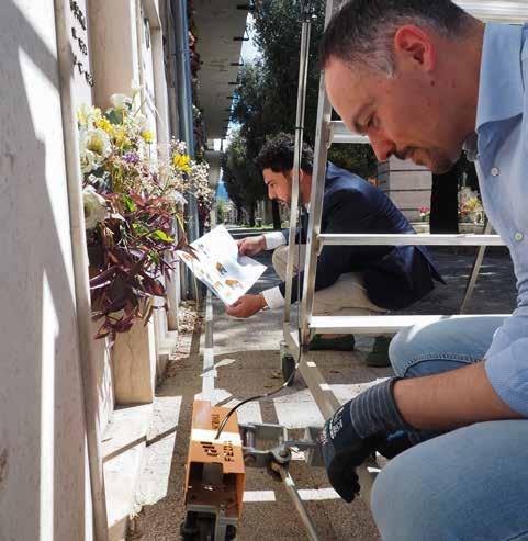 «Una delle nostre innovazioni più significative è il sistema Scroll, un sistema di scorrimento per scale che migliora notevolmente la sicurezza e l'utilizzo senza compromettere l'integrità strutturale. Questo sistema permette alle scale di adattarsi anche a superfici irregolari, un vantaggio notevole nei cimiteri storici dove i sentieri possono non essere sem-